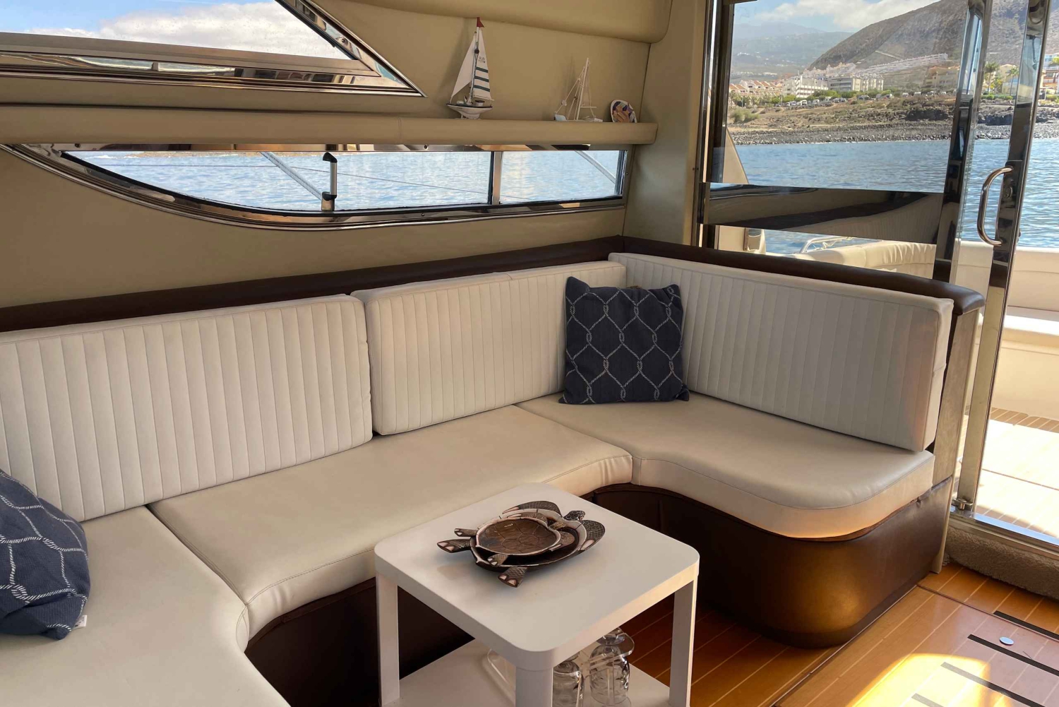 Udforsk Tenerifes sydkyst på en luksus motoryacht fra Las Galletas. Hold øjnene åbne for hvaler og delfiner, stop for en frokostbuffet og snorkling, og slap af på din private yacht.