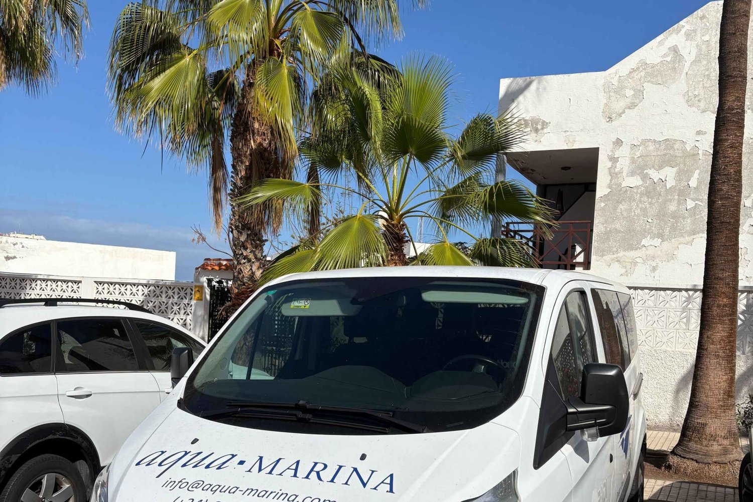 Tag på et snorklingseventyr på Tenerife med en hurtig bådtransport fra Los Cristianos havn til den ikoniske bugt ved siden af Palm Mar. Se det lokale havliv, som omfatter skildpadder, rokker og delfiner. Mød din guide på Aqua-Marina dykkercenter i Playa de las Americas, hvor du tilmelder dig og får alt det udstyr, du har brug for, herunder en lang våddragt, der holder dig varm. Der kan gives instruktion, hvis du ønsker det. Vi tager den korte tur til Los Cristianos havn og går ombord på en hurtigbåd til Tenerifes ikoniske bugt ved siden af Palm Mar. Brug cirka 45 minutter på at snorkle og observere det lokale havliv, som omfatter majestætiske skildpadder, flere arter af rokker, lokale fiskestimer og endda delfiner. Efter dit snorkleeventyr vender du tilbage til dykkercentret i Playa de las Americas eller tager direkte fra havnen i Los Cristianos.