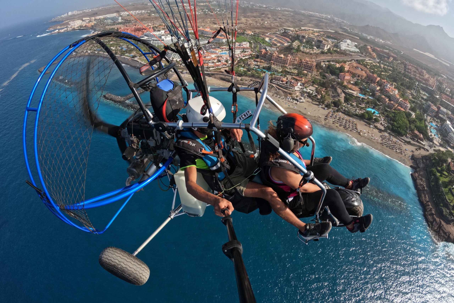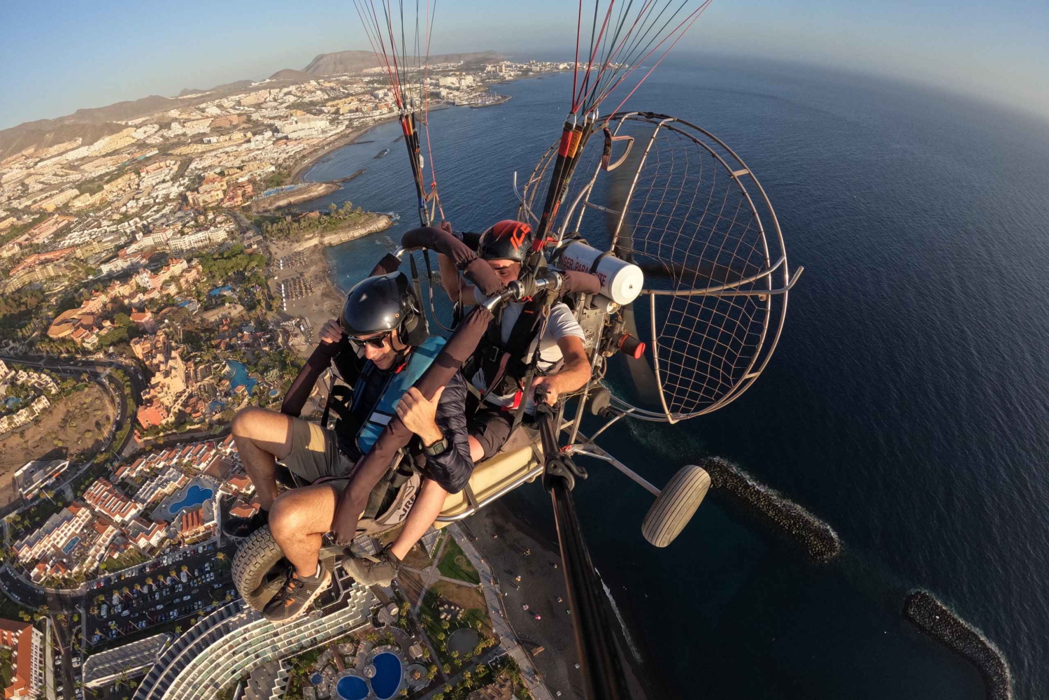 Erobere die Lüfte über dem Süden Teneriffas! Genieße 20 Minuten pure Aufregung in der Luft bei einem Paratrike-Flug mit Fluglehrer und genieße dabei spektakuläre Aussichten auf die besten Buchten und Strände.