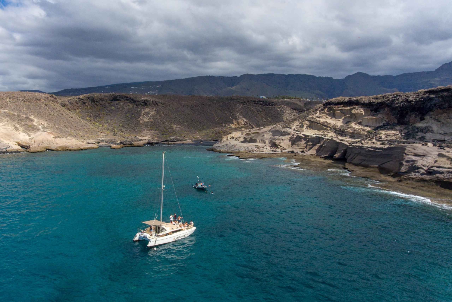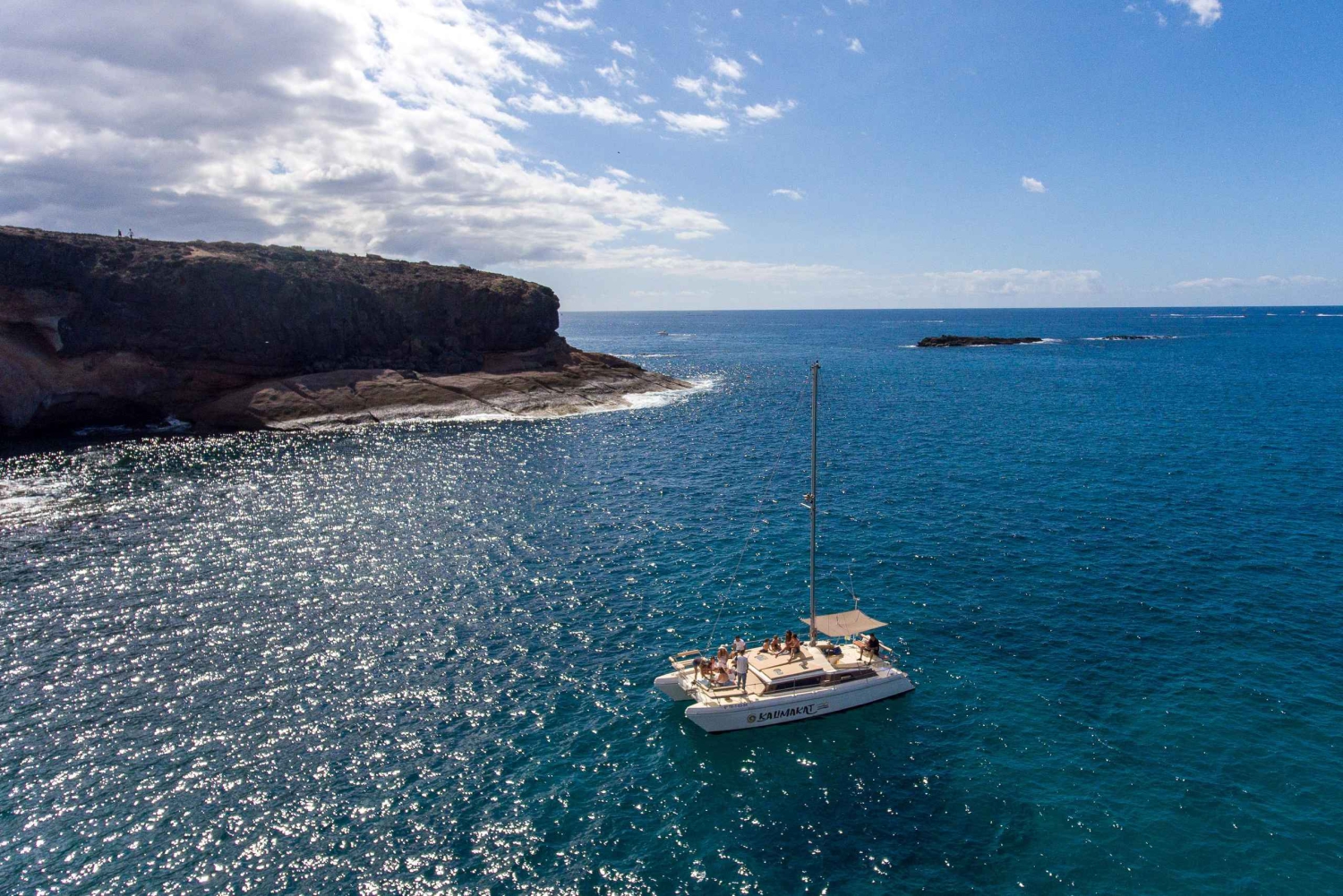 Navega con Kalima Kat y disfruta de una inolvidable excursión en catamarán por Tenerife. Salimos de Puerto Colón, donde podrás relajarte con la brisa marina y quizás avistar ballenas y delfines en su hábitat natural. Disfruta de una cala en la Playa de Veril, con aperitivos y bebidas de cortesía.
