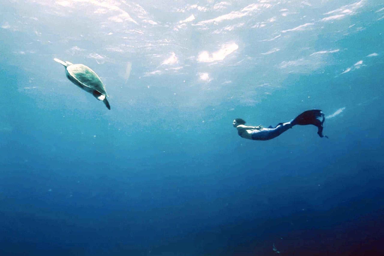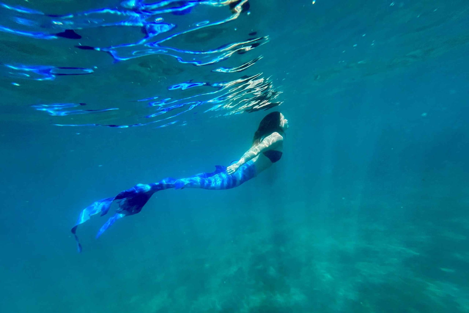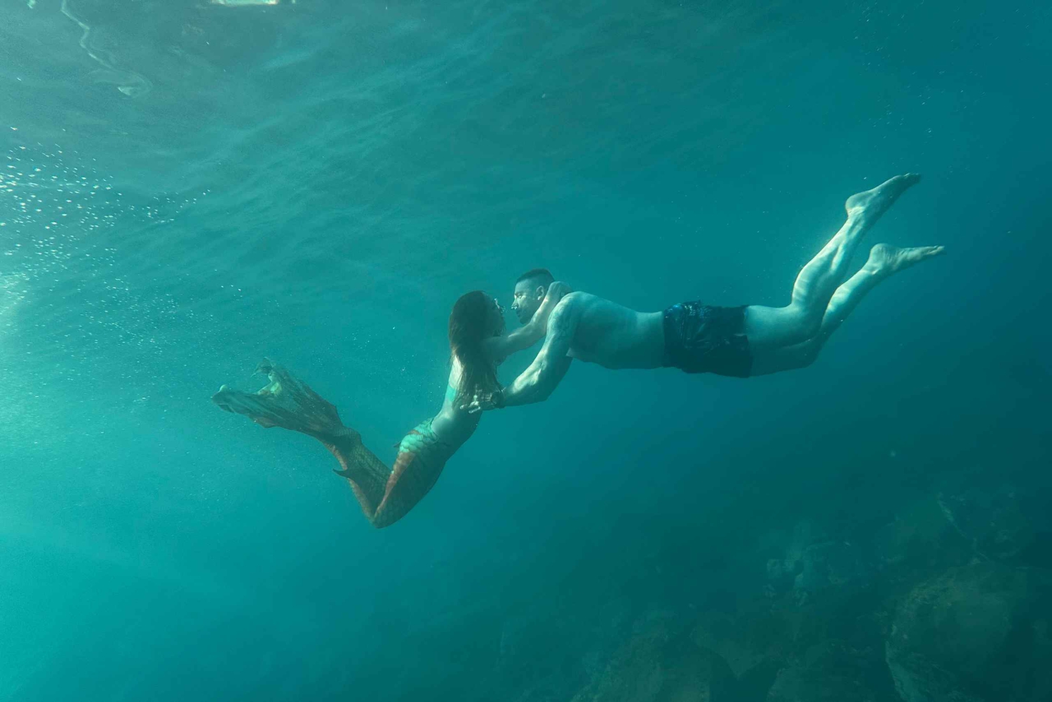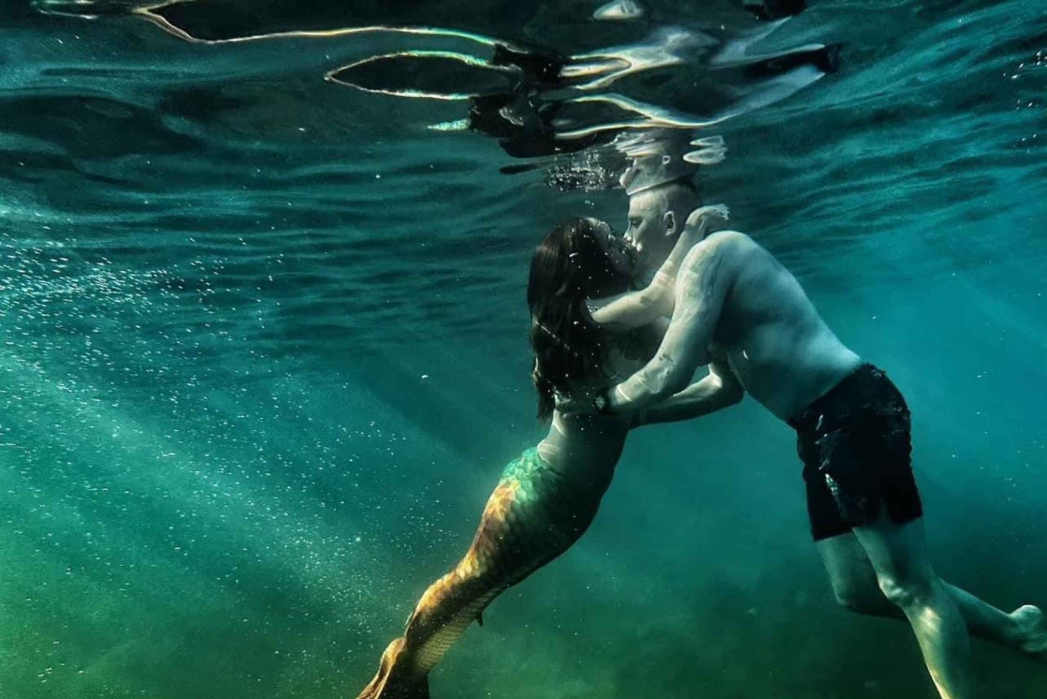 Hazte fotos durante una experiencia de sirena única. Observa la vida bajo el agua mientras nadas con los peces y posas alrededor de los corales.