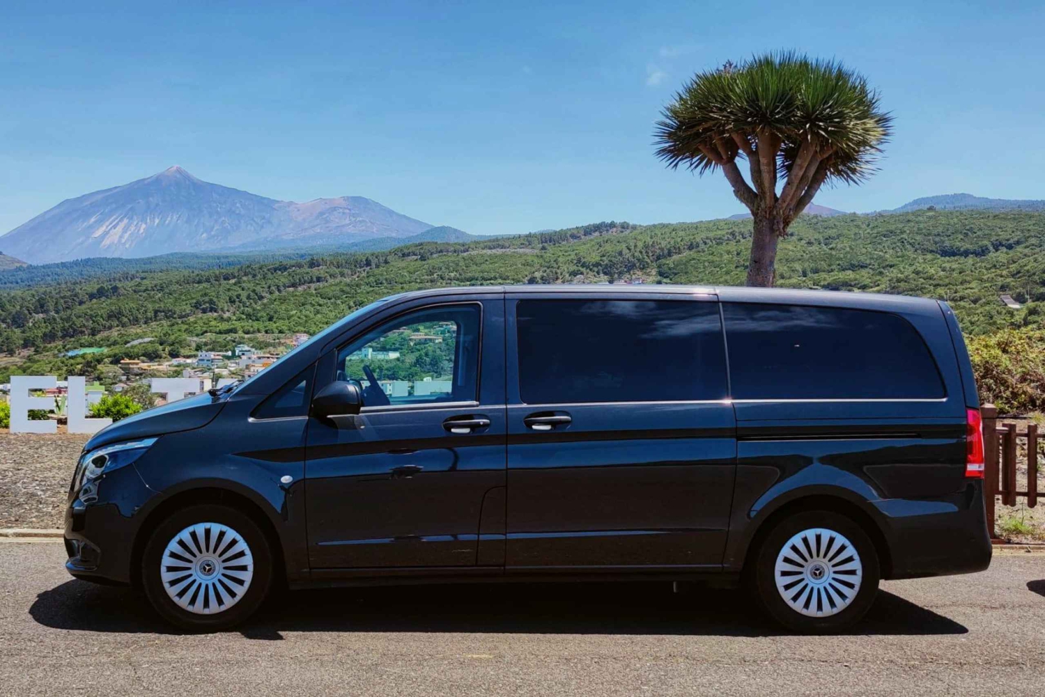 Empieza el día con la recogida en el hotel y sal en una cómoda minivan para explorar los puntos destacados de Tenerife. Visita una granja local de aloe vera en Güímar y la famosa basílica de Candelaria, un importante lugar de peregrinación. Pasea por la histórica plaza del Adelantado en La Laguna y luego disfruta de las vistas de la isla desde el mirador de Humboldt. Sigue hasta Icod de los Vinos, donde está el legendario Drago Milenario, y luego a Garachico, un pueblo costero moldeado por erupciones volcánicas y conocido por sus piscinas de lava naturales. Termina tu aventura en Masca, un pintoresco pueblo de montaña rodeado de impresionantes barrancos. Durante el tour, tu guía experto te cuenta historias, cultura y anécdotas locales, mientras disfrutas de paradas para fotos y tiempo libre en pueblos encantadores. Al final del día, relájate en el traslado de regreso, completando un inolvidable día de descubrimiento de Tenerife.