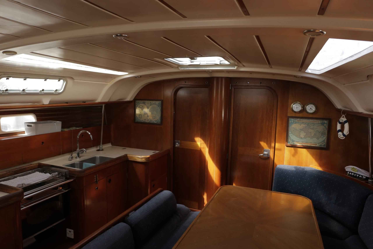 The boat is a Beneteau Oceanis 440 with a length of 13.76 meters, well equipped for deep water navigation, convenient and comfortable. All cabins are spacious and have wardrobes, drawers and storage space, the aft cabins have direct access to bathrooms equipped with showers and hot water. The cooking area is equipped with three kitchen burners, two sinks, oven and two refrigerators.