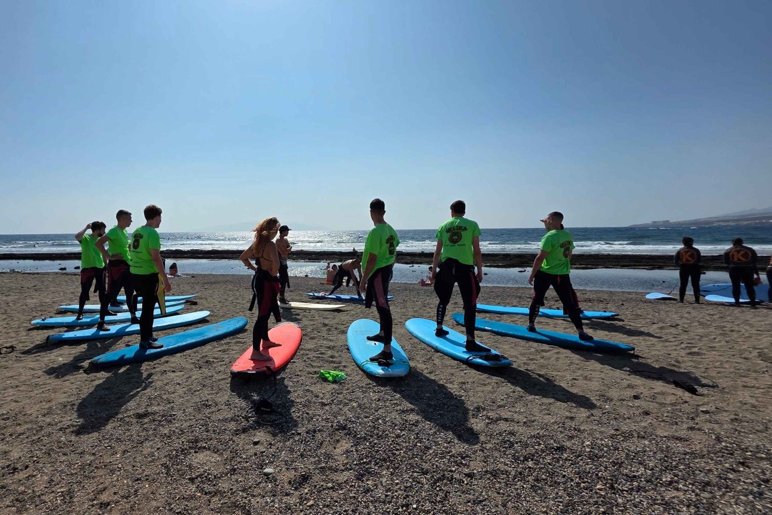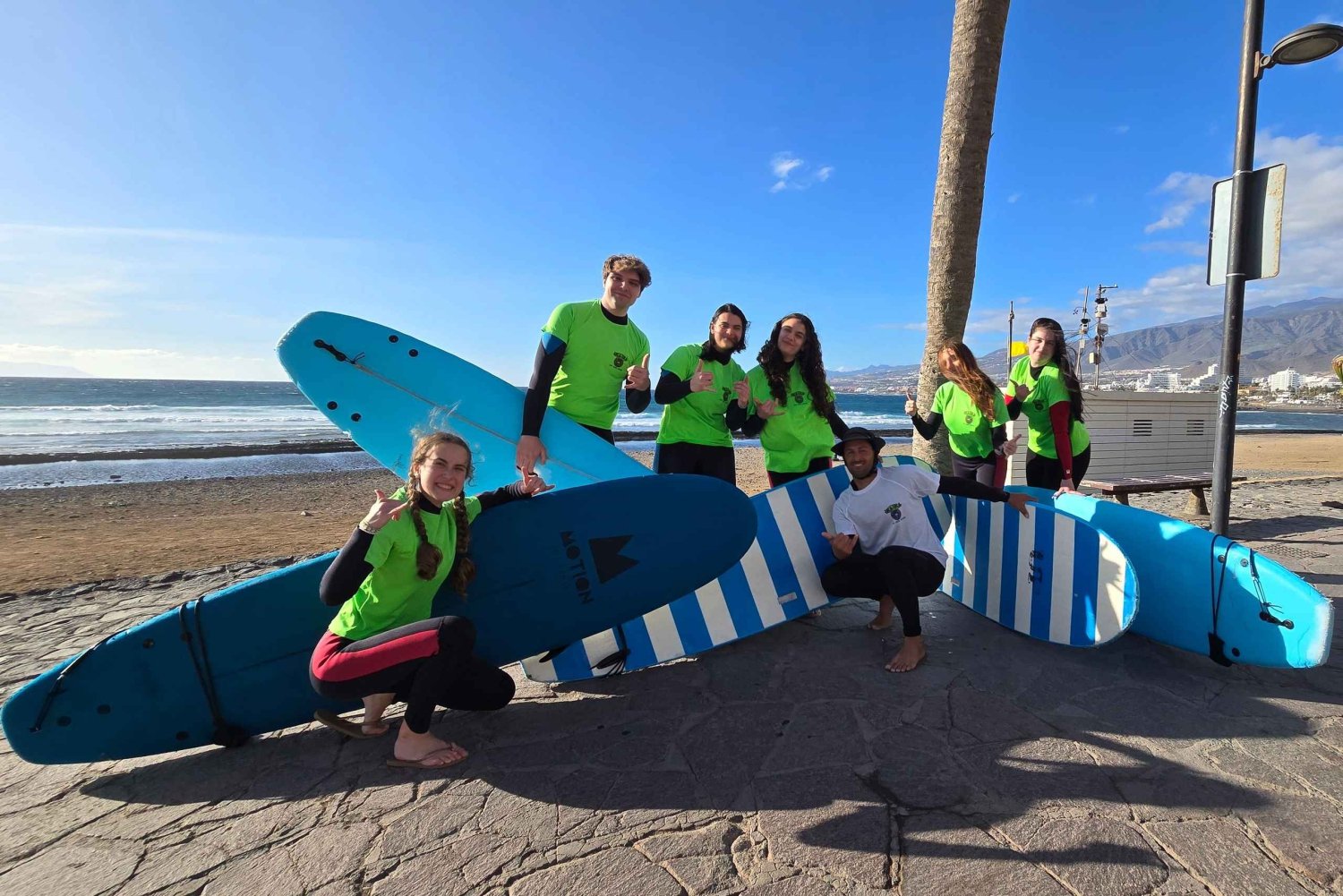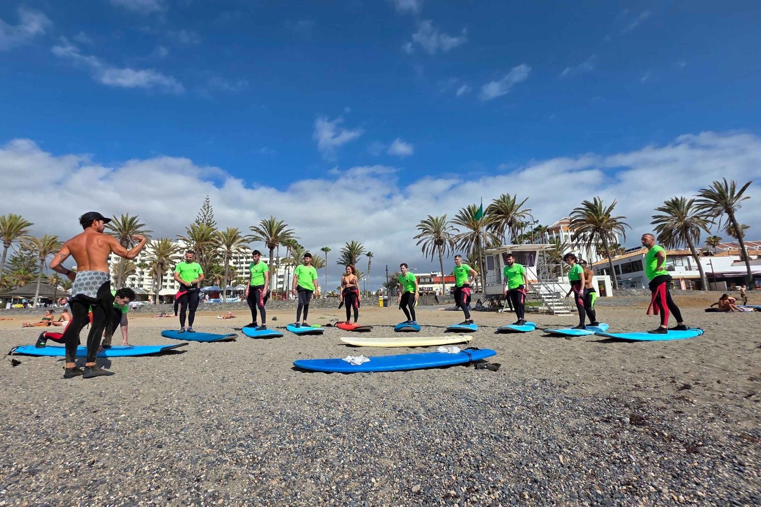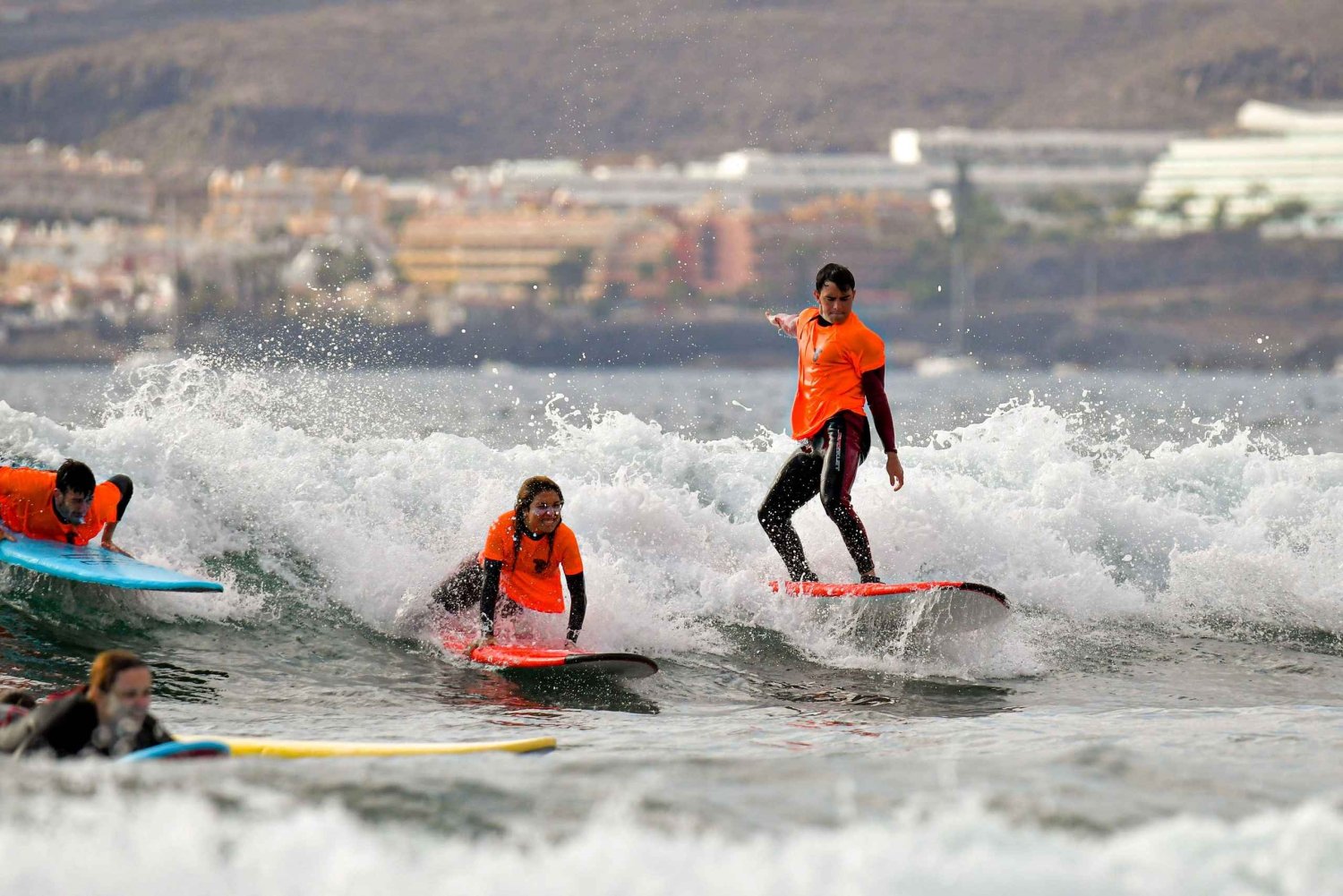 Experience the thrill of surfing right on the beach at Playa de las Américas, Tenerife.