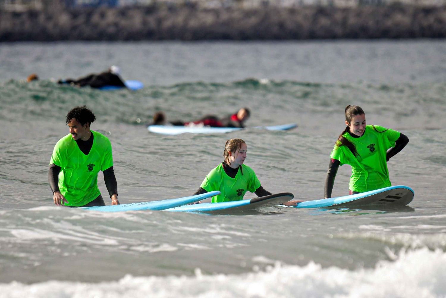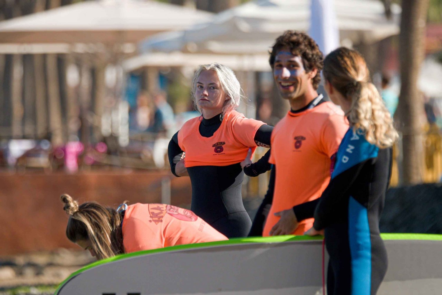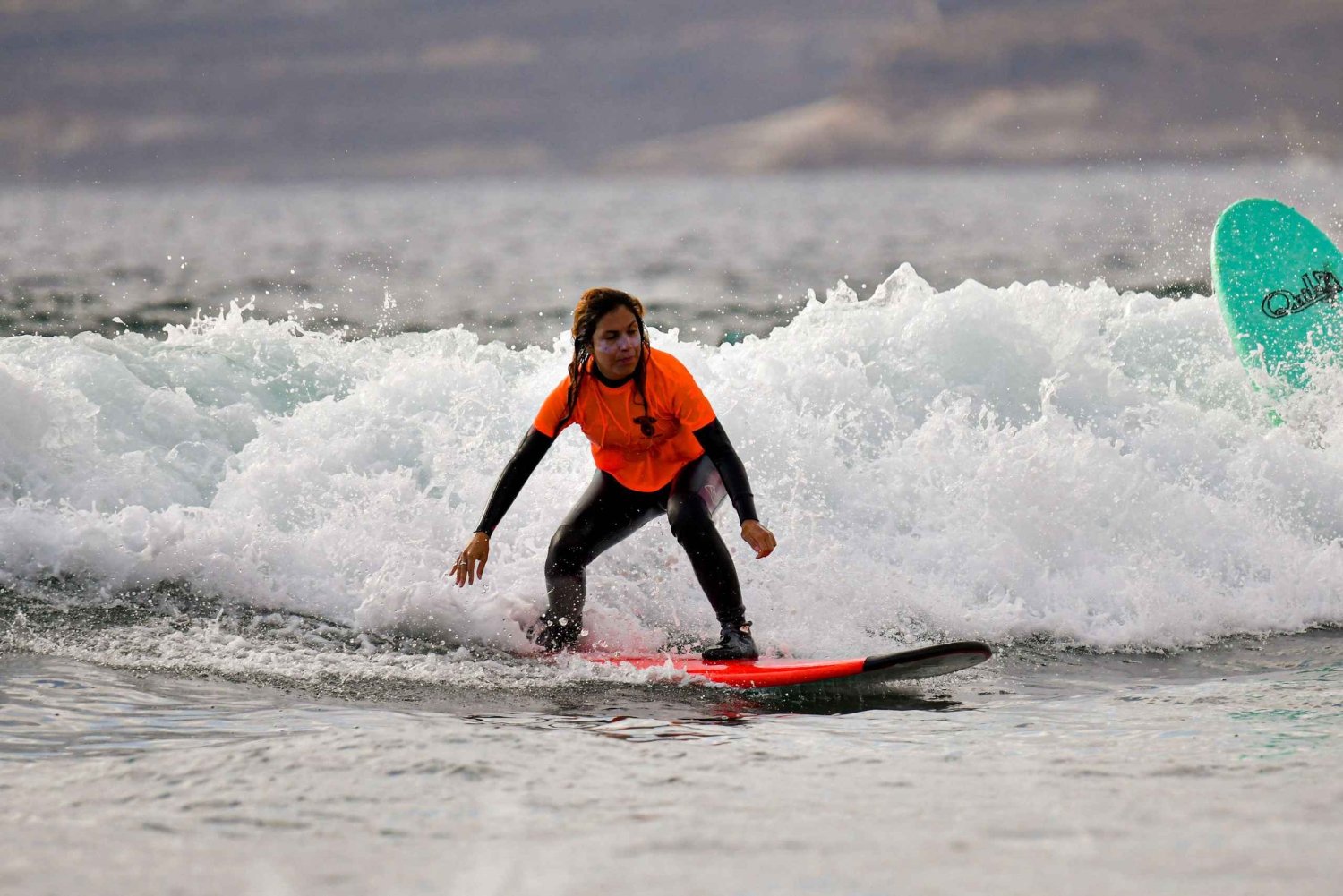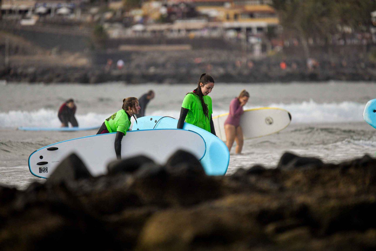 Experience the thrill of surfing right on the beach at Playa de las Américas, Tenerife.