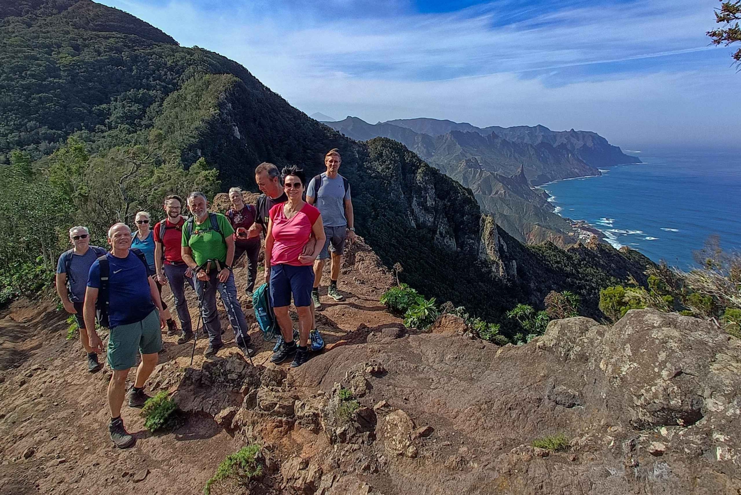 Guided hiking tour in a hidden part of Anaga Mountains in Tenerife. Admire the views of the Roques de Anaga, discover the dense laurel forest, enyoj a meal of local specialties and wine on site.