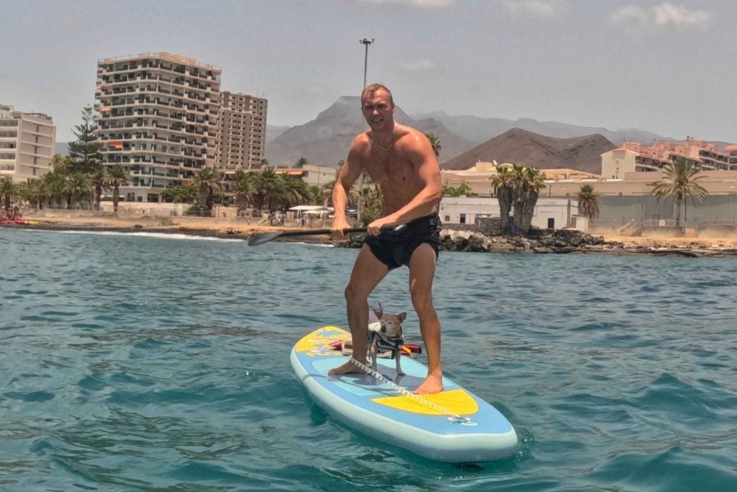 Check out the bay of Los Cristianos on a paddleboard Paddle on calm waters, soak up the sun, and have a fun and relaxing time in the Tenerife sea.