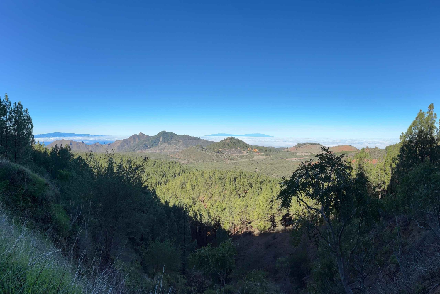 As you continue your adventure, the terrain evolves into a dynamic mix of gravel, small rocks, and rugged soil. Upon reaching the forest's edge, prepare for a more challenging incline. Your path now meanders amidst the towering Canary Island pine trees, offering a sense of immersion in this ecosystem.