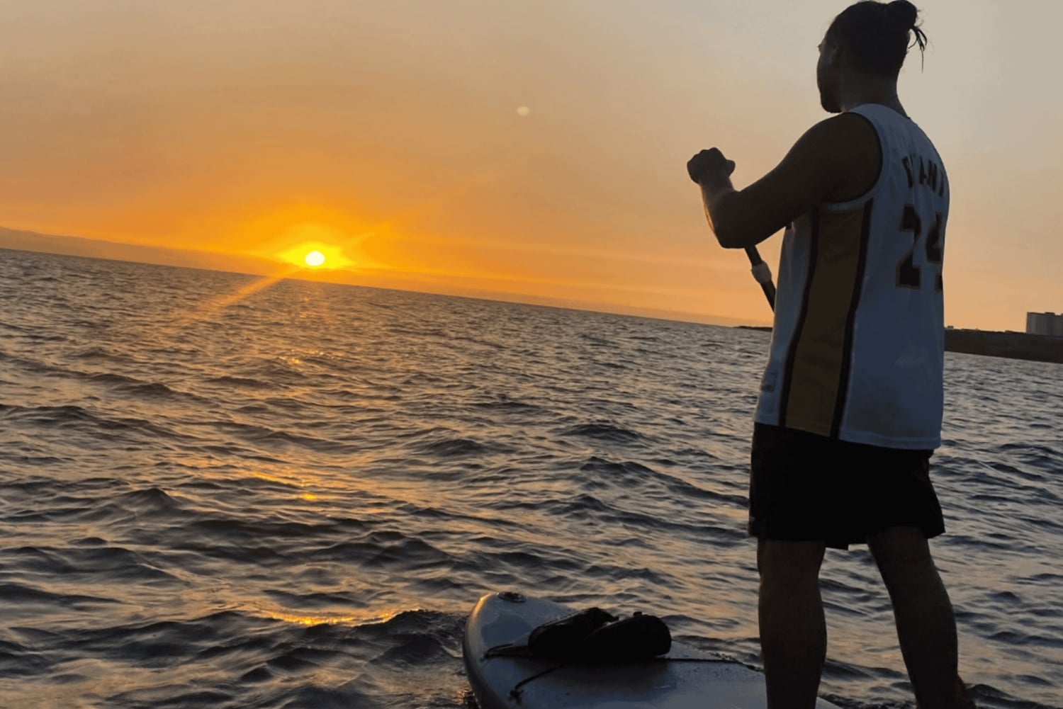 "Discover a magical sunset in southern Tenerife through SUP paddleboarding."
