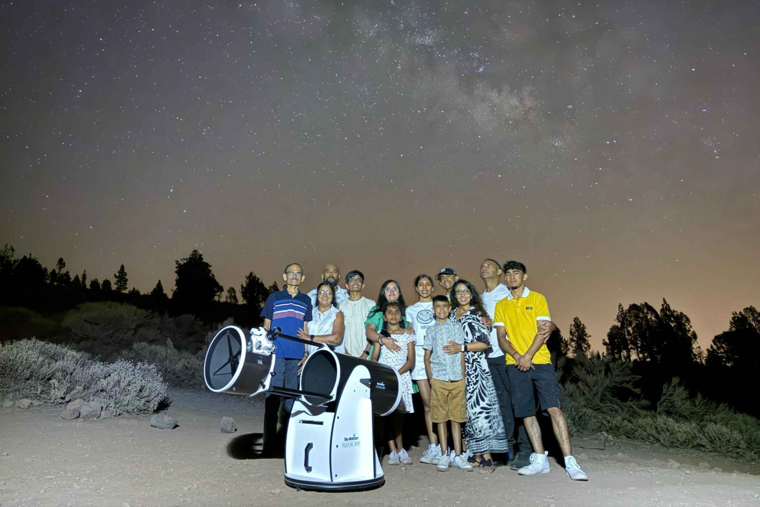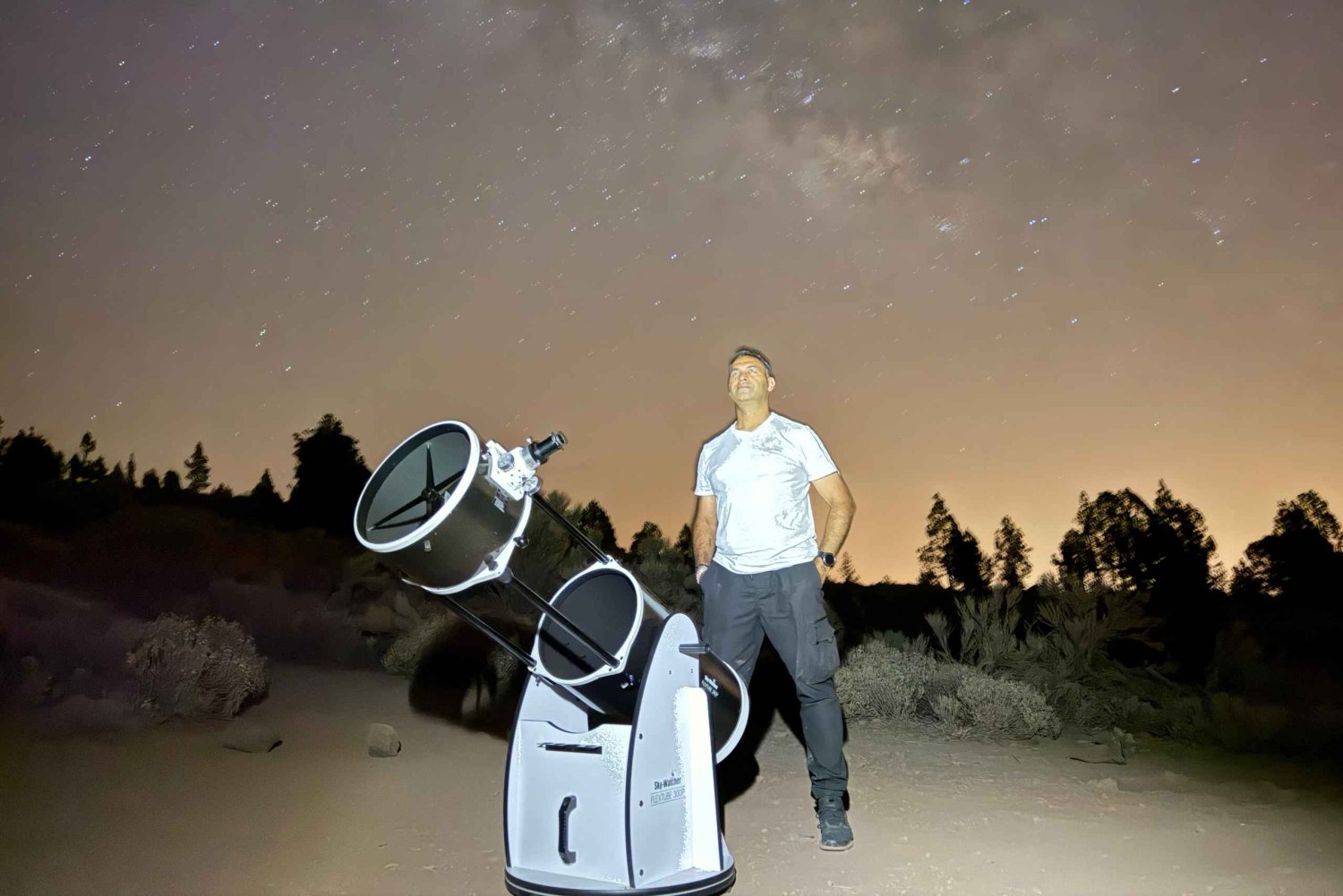 Vivez une expérience astronomique authentique au cœur du parc national du Teide avec Andromeda Project. Un voyage complet entre nature, ciel étoilé et saveurs locales, conçu pour vous surprendre à chaque instant. Nous venons vous chercher directement à votre hôtel et montons à travers les paysages lunaires du parc volcanique, en vous racontant des anecdotes, des légendes guanches et des histoires fascinantes liées au ciel de Tenerife.