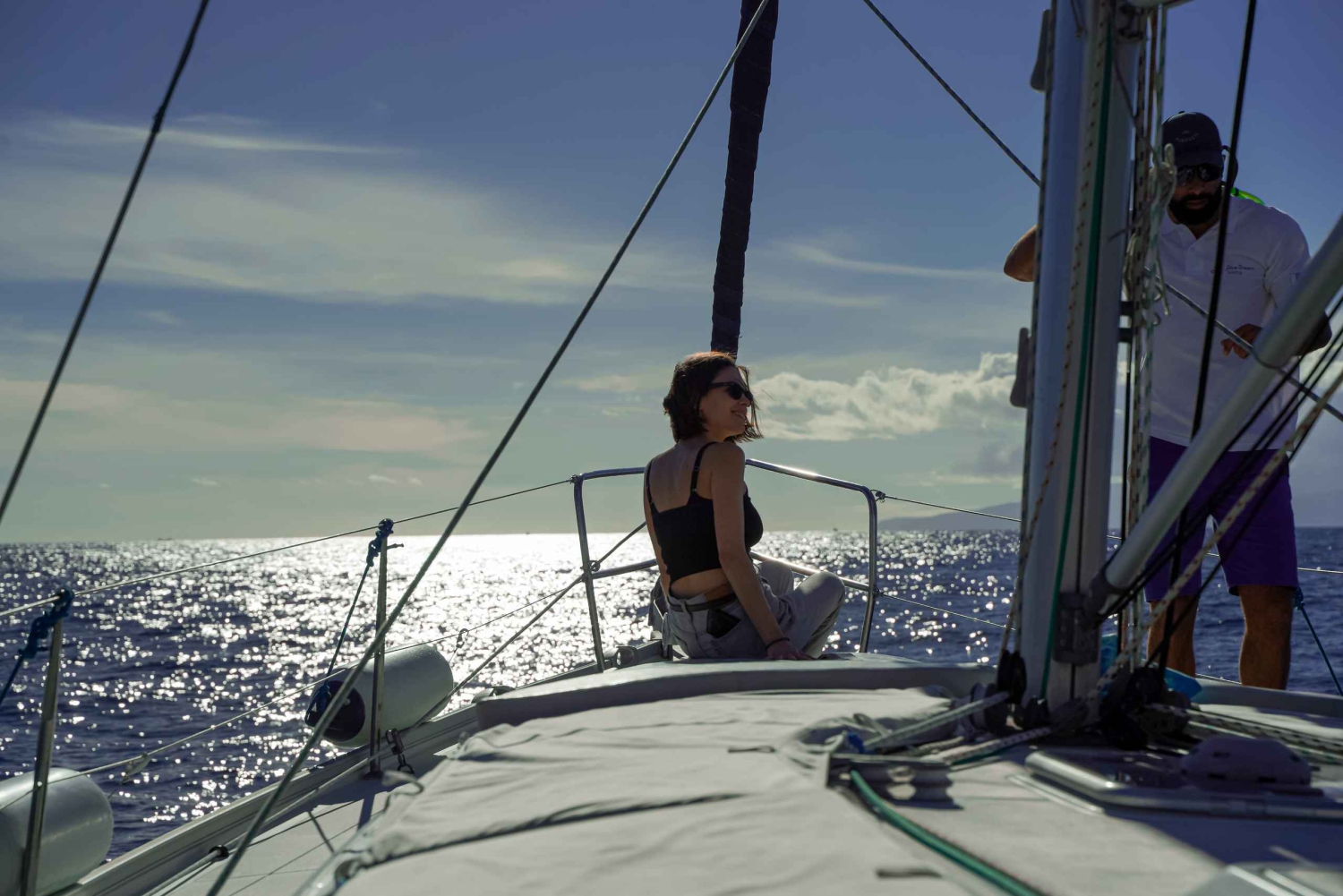 Une prise en charge à votre hôtel dans la région de Los Gigantes et un trajet jusqu'au port, où vous rencontrerez votre skipper et monterez à bord du Sangría. Mettez les voiles le long de la côte, en suivant les spectaculaires falaises rouges. Arrêtez-vous dans des criques cachées et des baies calmes.