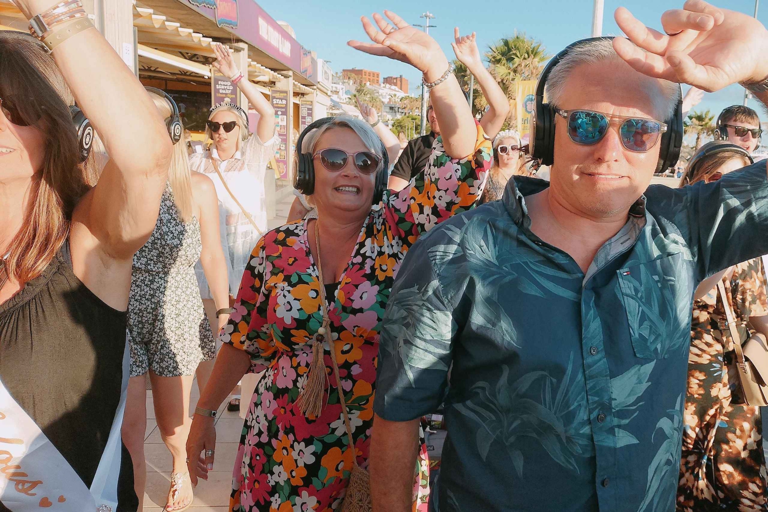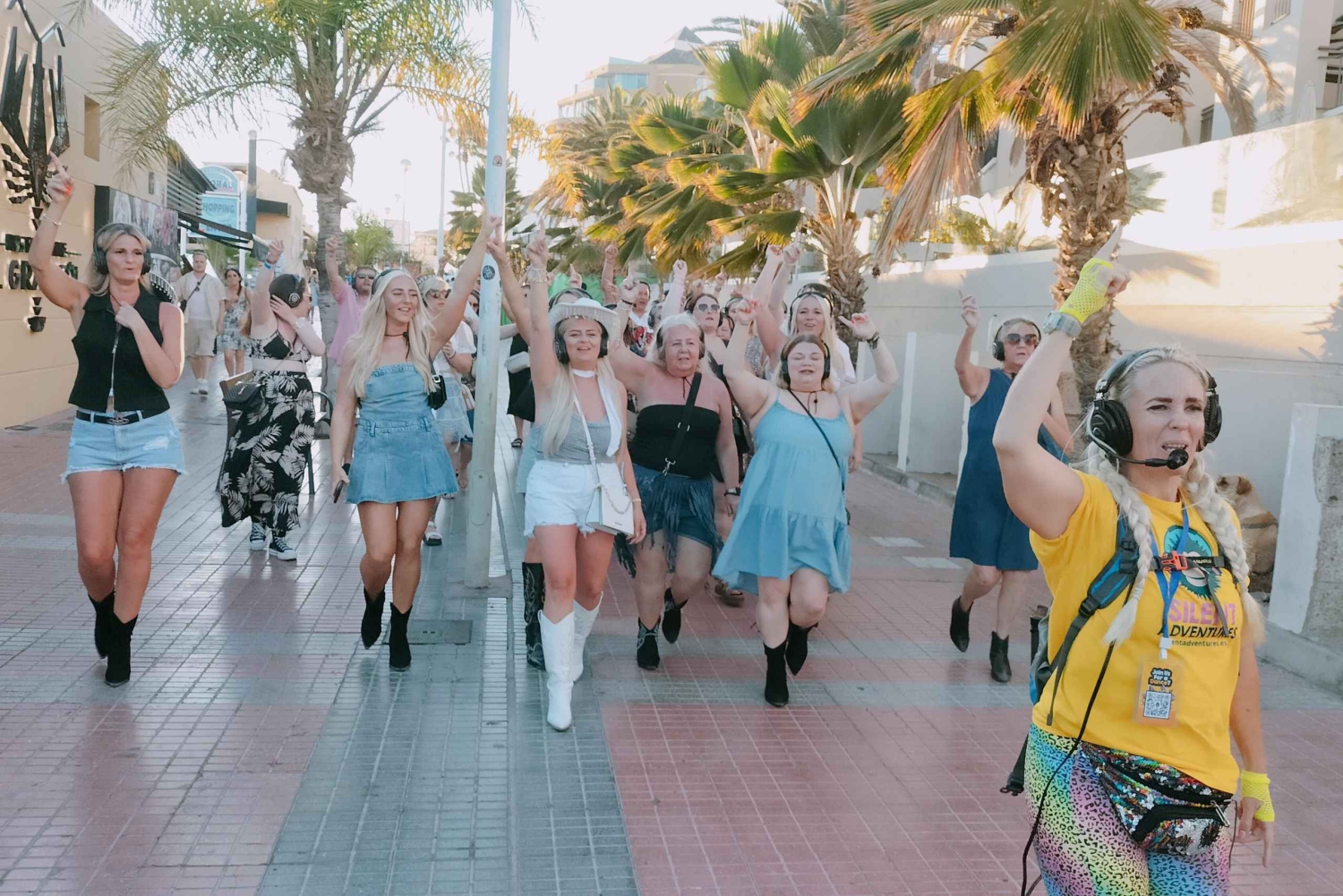 Rejoignez votre équipe de silent disco pour une heure d'amusement, de rire et de folie totale. Ils vous emmèneront dans un voyage de chansons et de danses à travers les célèbres rues de la plage de Fanabe et les bars et restaurants environnants. Cette aventure musicale a pour but de mettre en valeur vos mouvements de danse funky et vos voix de pop star pour chanter la sérénade aux touristes et aux habitants. Riez et gloussez car les seules personnes qui comprennent ce qui se passe sont celles qui sont en tournée avec vous.