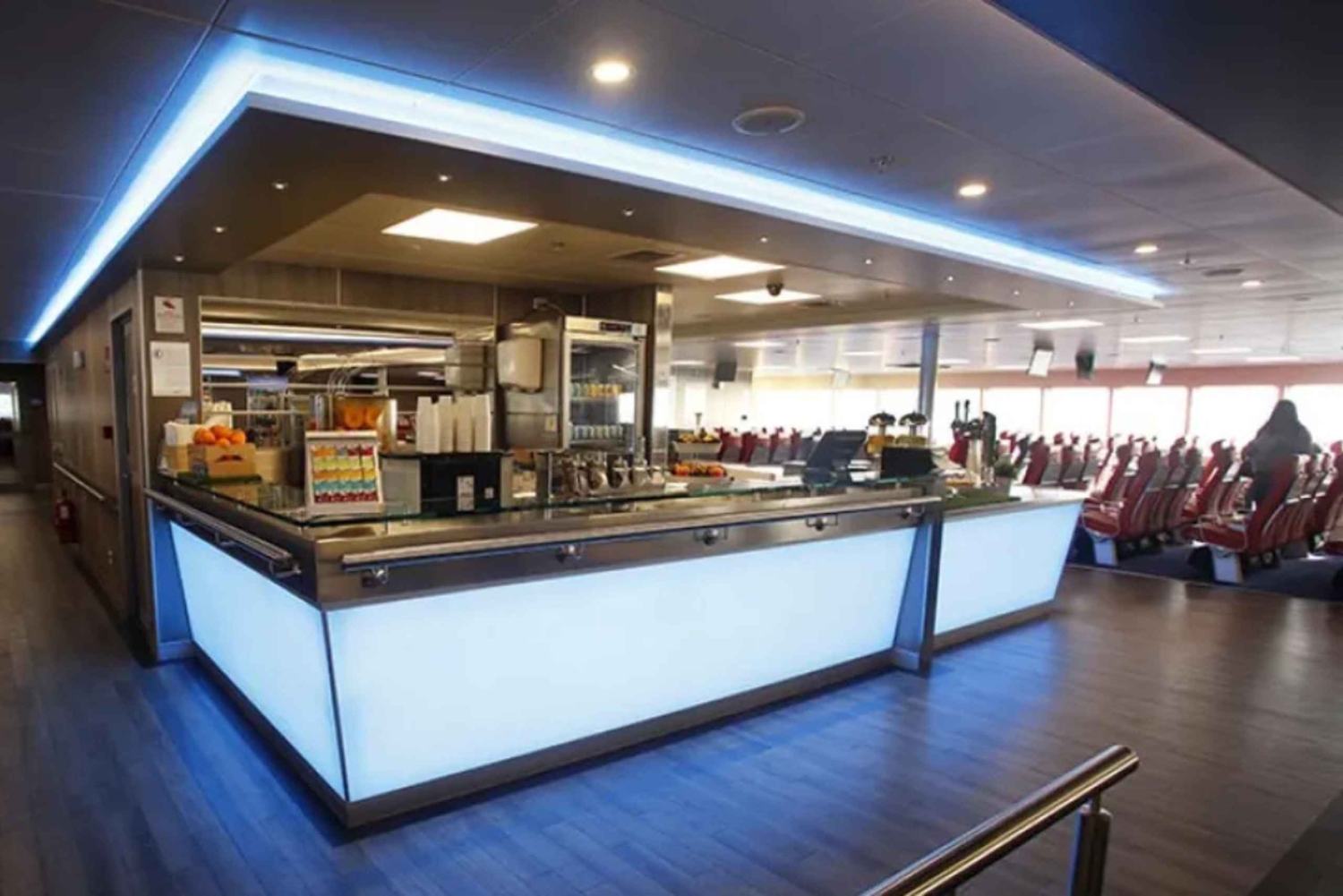 船上では、快適さとリラックスを第一に考えております。現代の旅行者のために設計された高速フェリー、ボルカン・デ・タゴロまたはボルカン・デ・タイディアで航海をお楽しみください。エアコン完備のラウンジ、パノラマの景色が楽しめる屋外デッキ、新鮮な食事やドリンクを提供するスナックバーをご利用いただけます。無料Wi-Fi、お子様用のプレイエリアなど、誰もがくつろいだ時間をお過ごしいただけます。フレンドリーなスタッフとスムーズなサービスで、海での時間は単なる旅ではなく、思い出の一部となります。