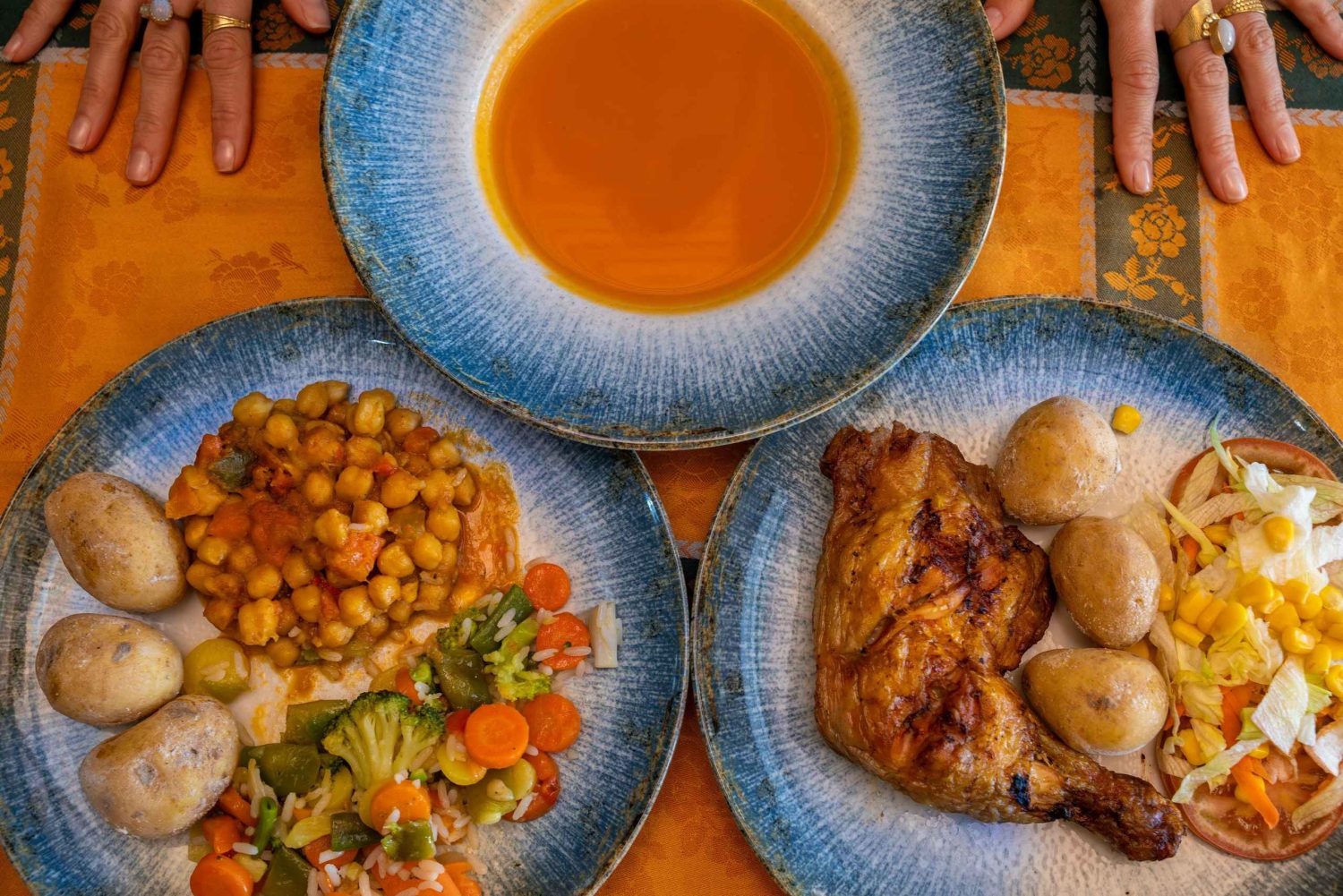 3コースのお食事(オプションを選択した場合)パンプキンスープ、ローストチキン、カナリアポテトとサラダ、チョコレートムースソフトドリンク、水、白ワイン、赤ワイン付き。ベジタリアン・ビーガンオプションあり。グルテンフリー、セリアック対応可。