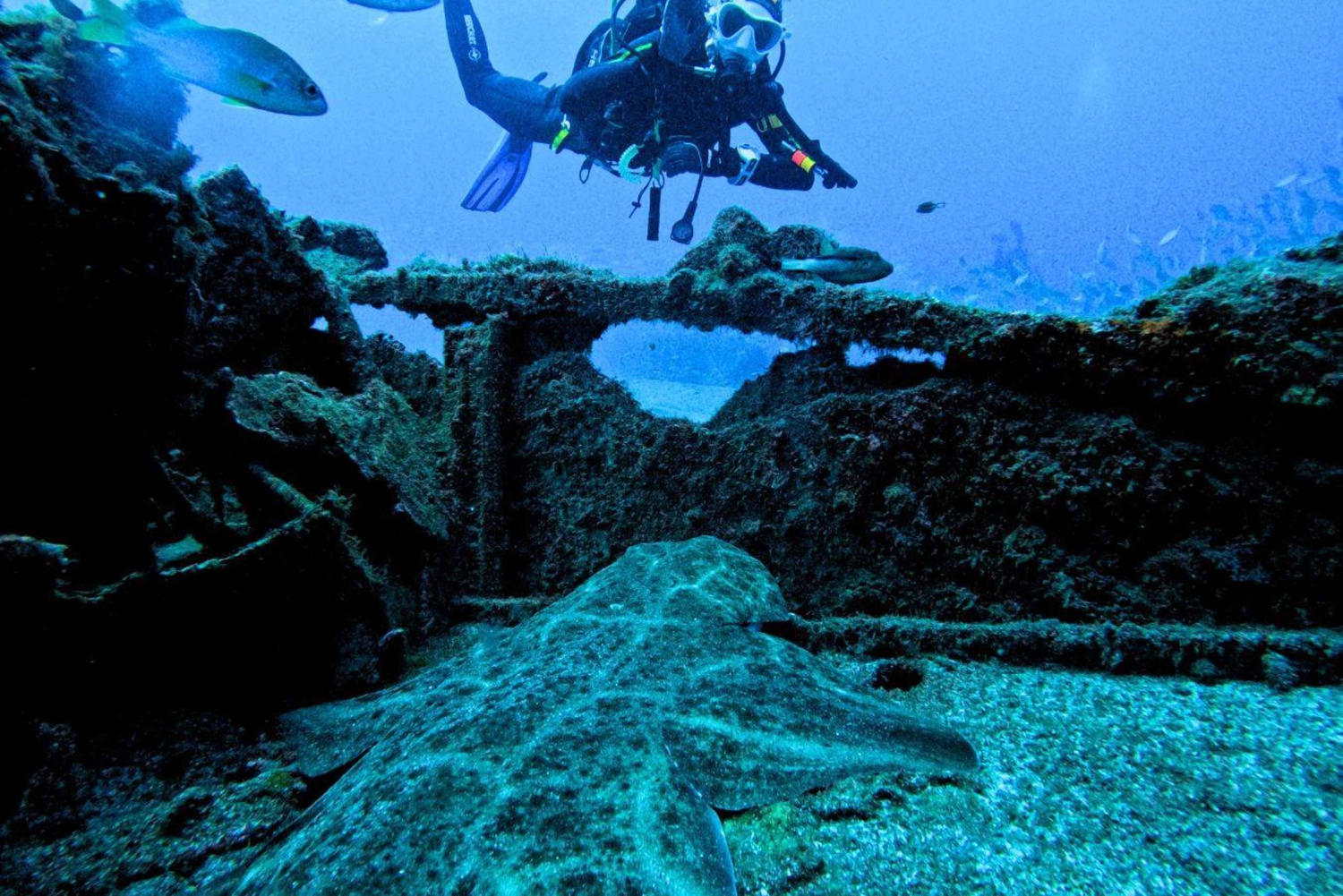 Ontdek onze wrakduiken en verken natuurlijke grotten en spelonken, die een uniek perspectief bieden op het mariene ecosysteem van het eiland.