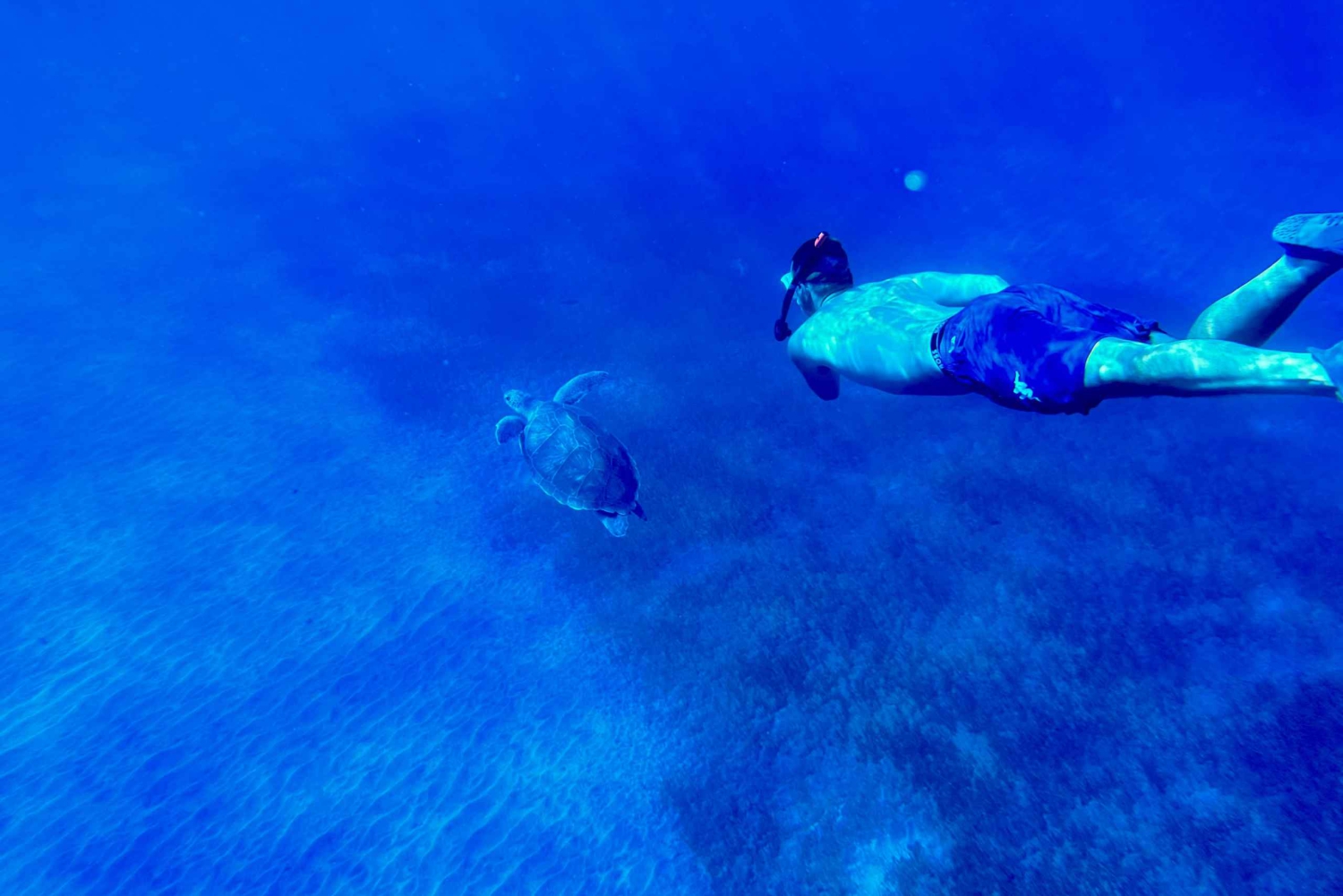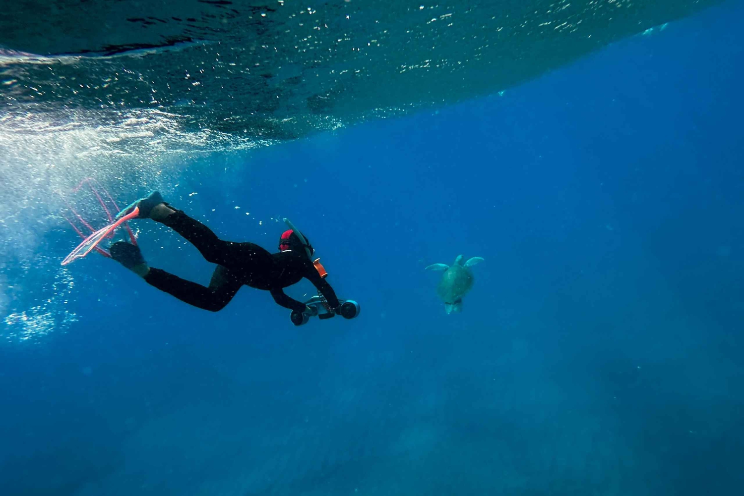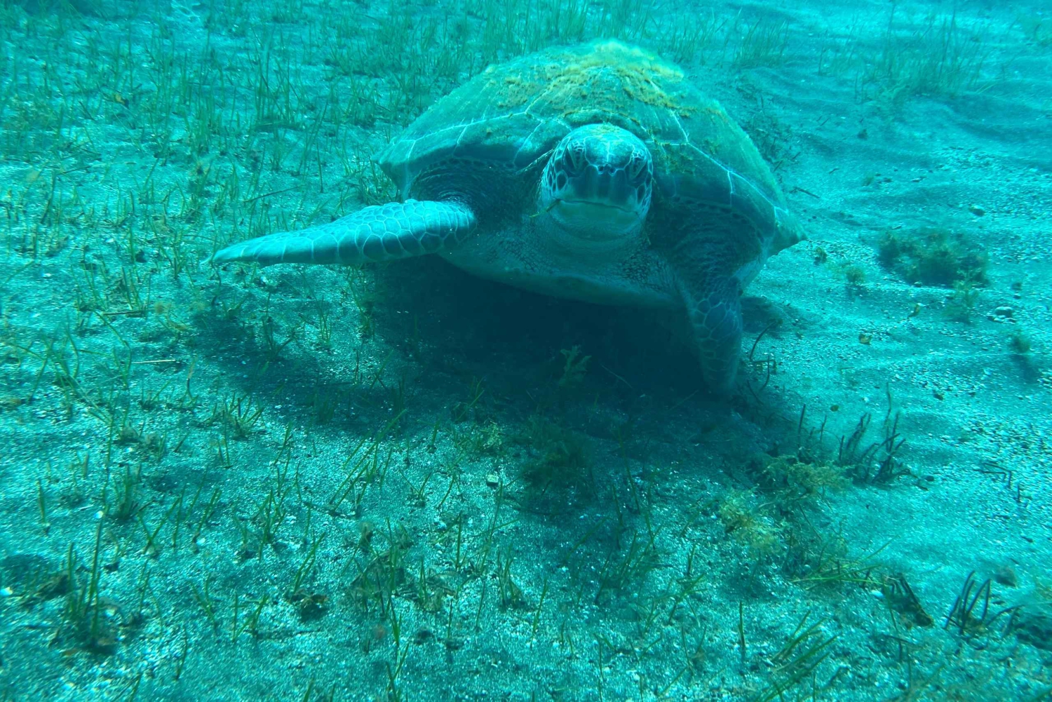 De tijd met de scooter zal ongeveer 40 minuten zijn, maar onze tour gaat nog steeds door op zoek naar de verbazingwekkende zeeschildpadden die in dit gebied leven.