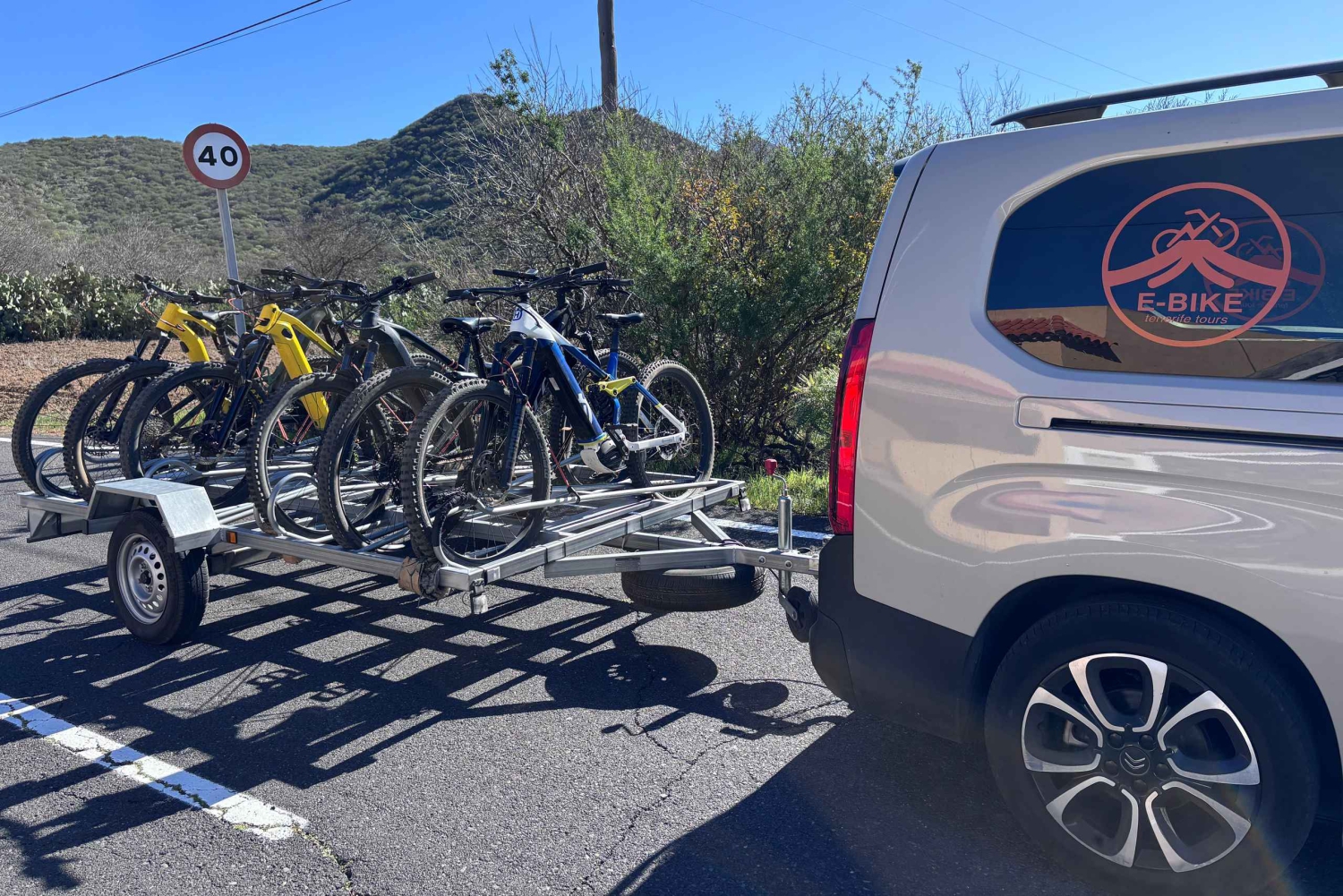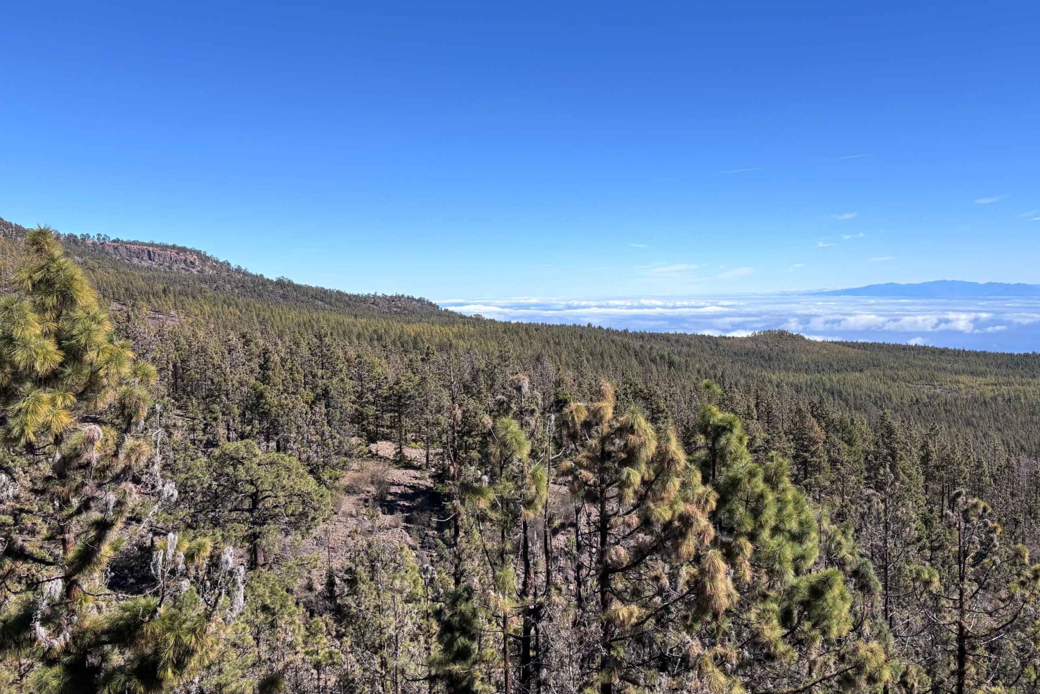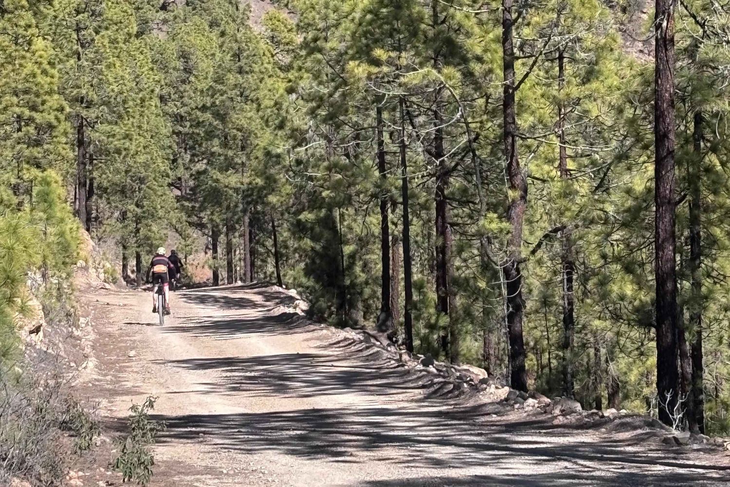 Ga op fietsavontuur vanaf de beroemde fietsenstalling van Vilaflor. Onze reis begint op een gladde asfaltweg die zich een weg baant door de eeuwenoude Canarische dennenbossen. Naarmate we vorderen, verandert het landschap en al snel bevinden we ons op een breed en gemakkelijk offroadpad dat ons dieper in de geheimen van het eiland wenkt.