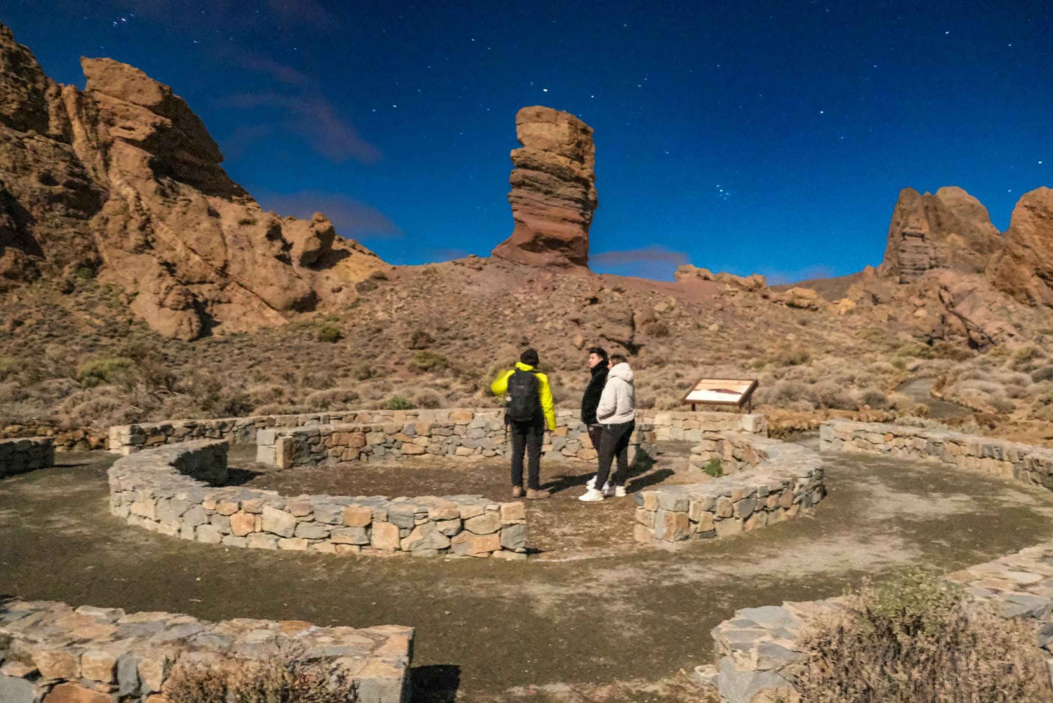 Onze reis begint bij het Roques de García gebied, waar we onze verkenningstocht beginnen bij het vallen van de avond of bij zonsondergang, afhankelijk van het seizoen. Deze betoverende tour bevat een gedetailleerde interpretatie van de nachtelijke hemel, waarbij astronomie wordt gecombineerd met geschiedenis. Je leert over sterrenbeelden, planeten en hemelverschijnselen zoals de maanstanden en vallende sterren.