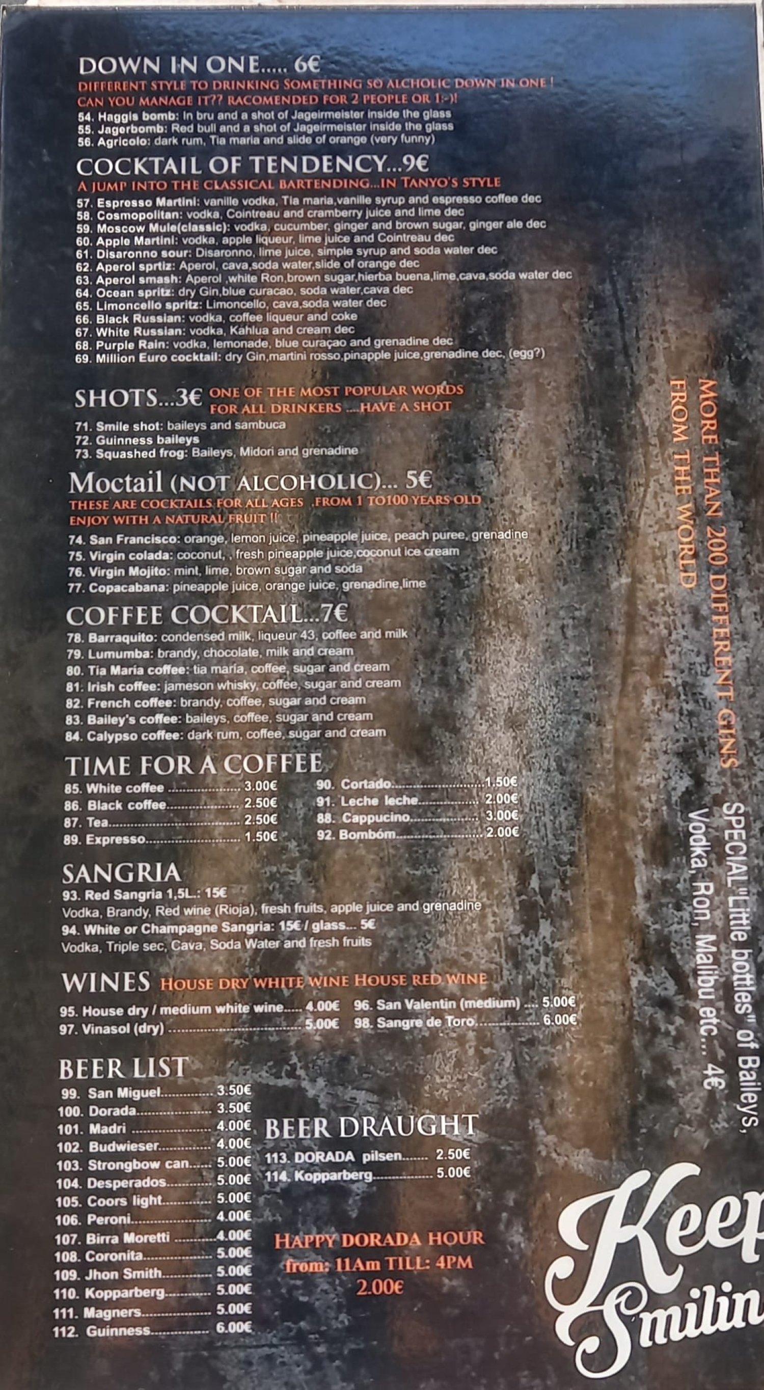 Dus, of je nu een ginliefhebber bent, een cocktailkenner, of gewoon zin hebt in een koud biertje met een dosis zonneschijn, Tanyo's Bar is de plek om te zijn.