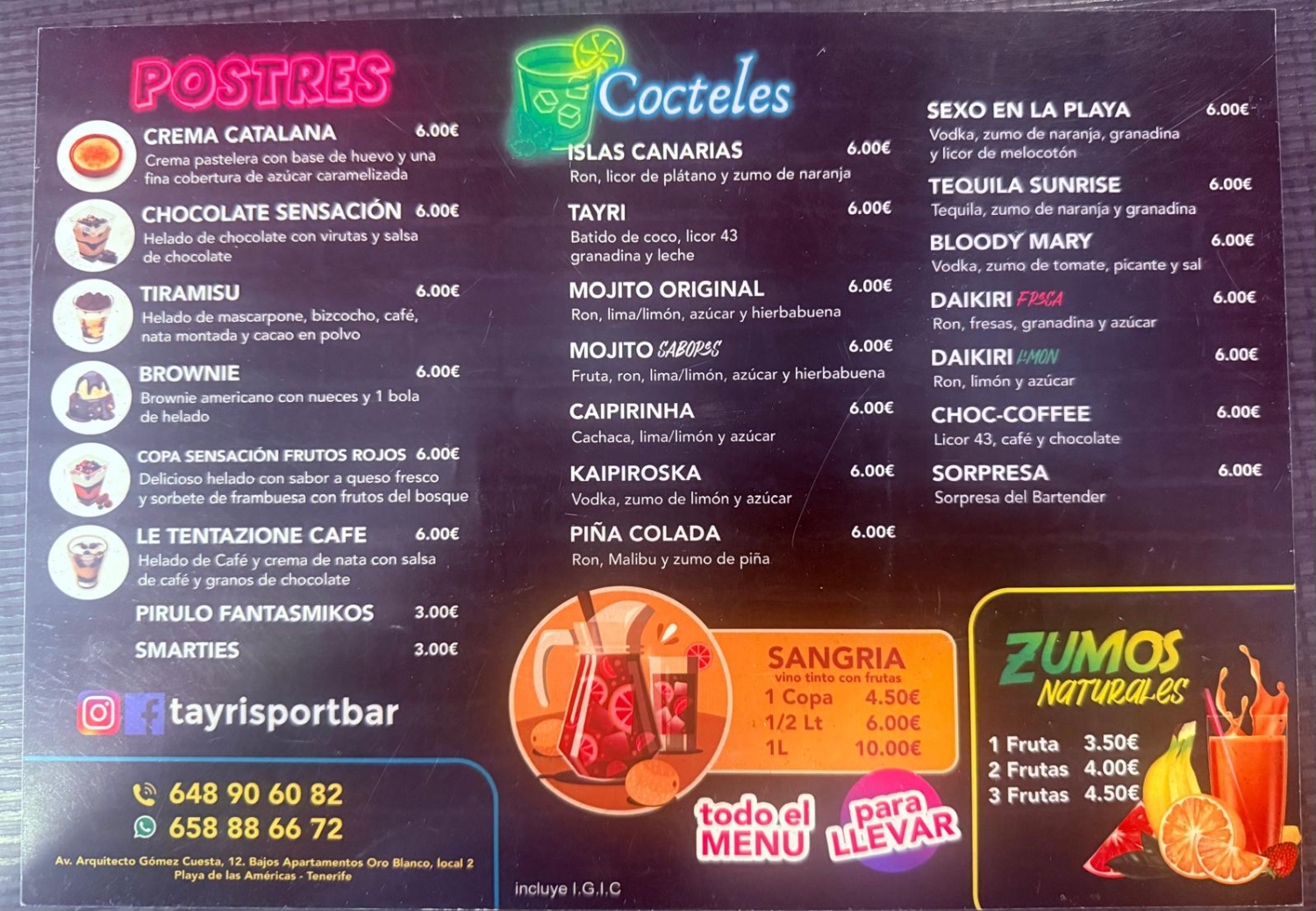 Wejdź do świata, w którym spełniają się marzenia każdego fana sportu, gdzie energetyczna atmosfera Playa de las Americas spotyka się z emocjonującym przeżyciem gry. Witaj w Tayri Sport Bar, ostatecznym miejscu dla pasjonatów sportu, miłośników dobrej kuchni i społecznych miłośników alkoholu.