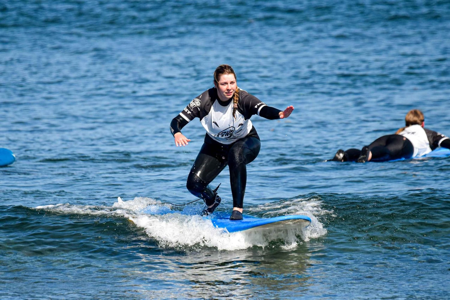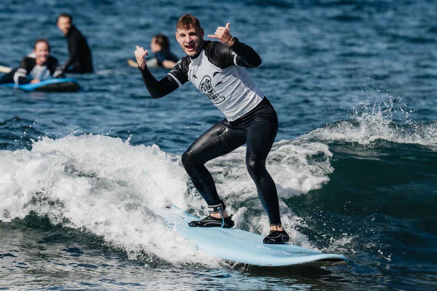 Quando estiveres na água, a verdadeira diversão começa. Damos-te muito tempo na água para praticar e apanhar o máximo de ondas que conseguires. Os nossos instrutores estão sempre ao teu lado, pois mantemos os nossos grupos pequenos. O instrutor até te vai ajudar a apanhar mais ondas, empurrando-te para elas.
