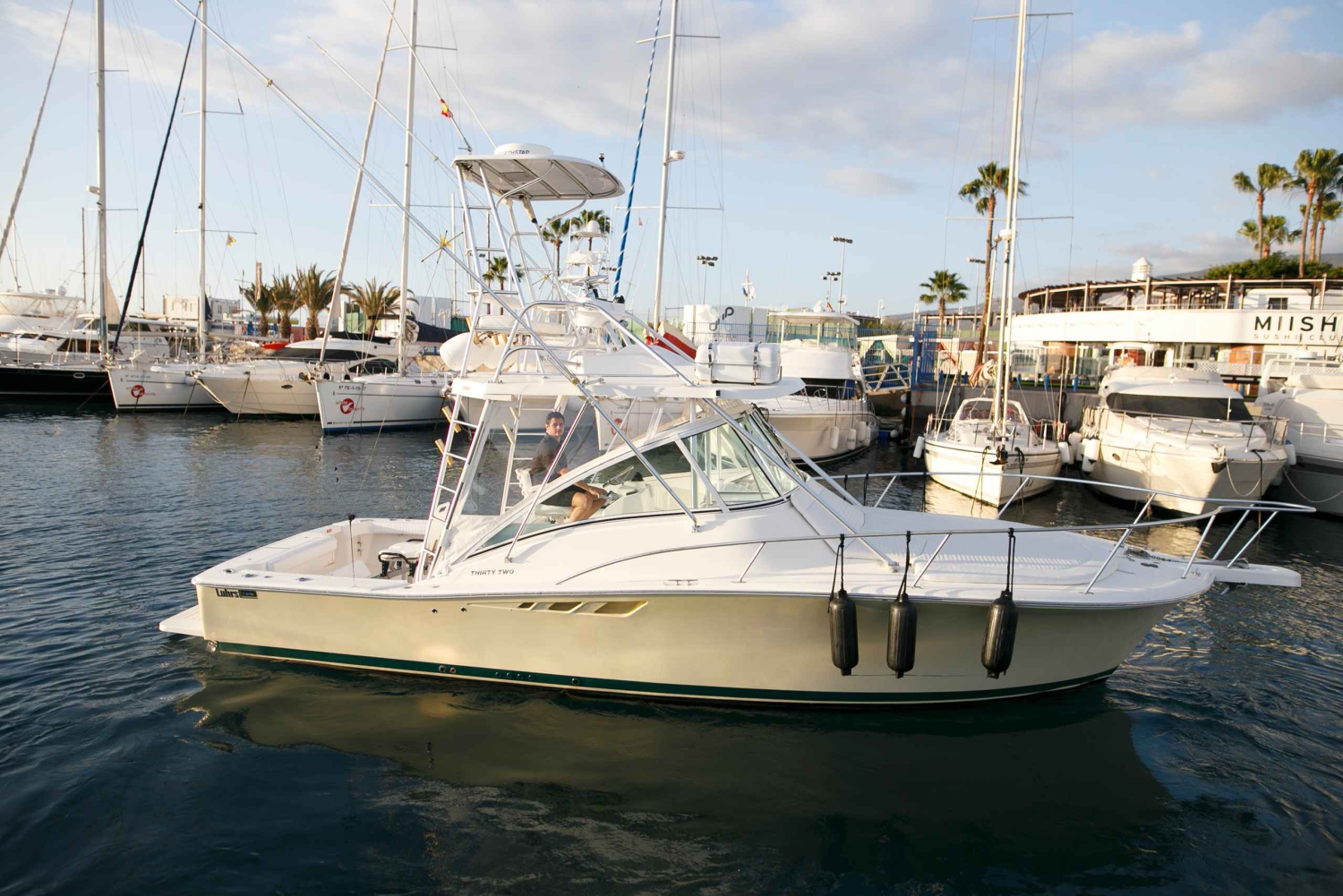 Embarque em seu iate particular na marina de Puerto Colón e relaxe enquanto navega ao longo da costa sul de Tenerife. Saboreie uma seleção de cervejas, refrigerantes e água enquanto aprecia a vista para o mar.