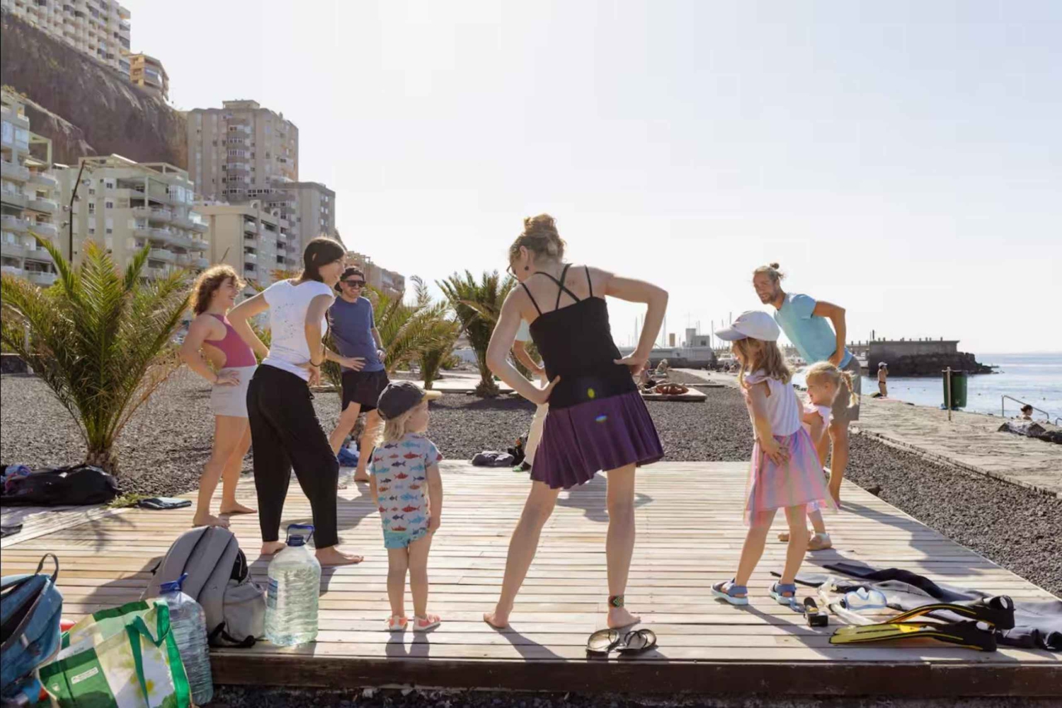 - A atividade seca acontecerá em uma plataforma de madeira em frente ao oceano.