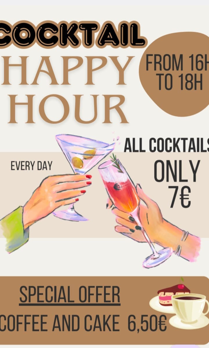 HAPPY HOUR DAILY FROM 4PM - 6PM, EVERY COCKTAIL ONLY €7