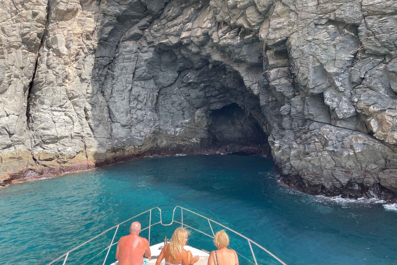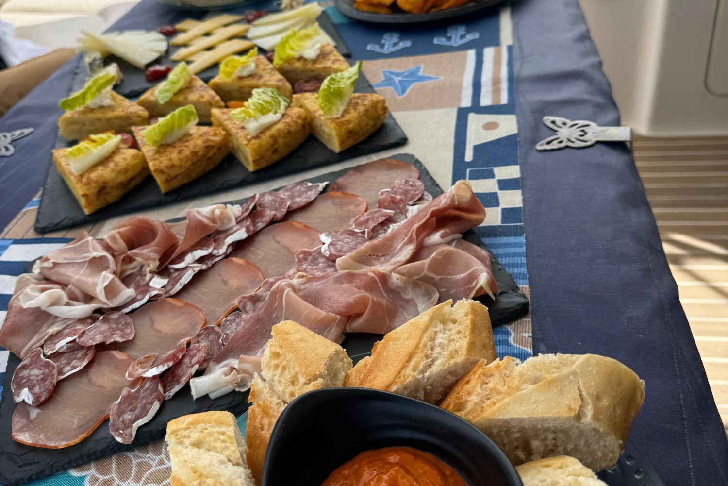 Наблюдение за китами, неограниченное количество алкогольных напитков (кава, вино, пиво) и безалкогольных напитков, изысканная еда, купание в заливе, подводное плавание с маской и трубкой, круиз на закате, экипаж из 2 человек, трансфер из X'Sur Costa Adeje