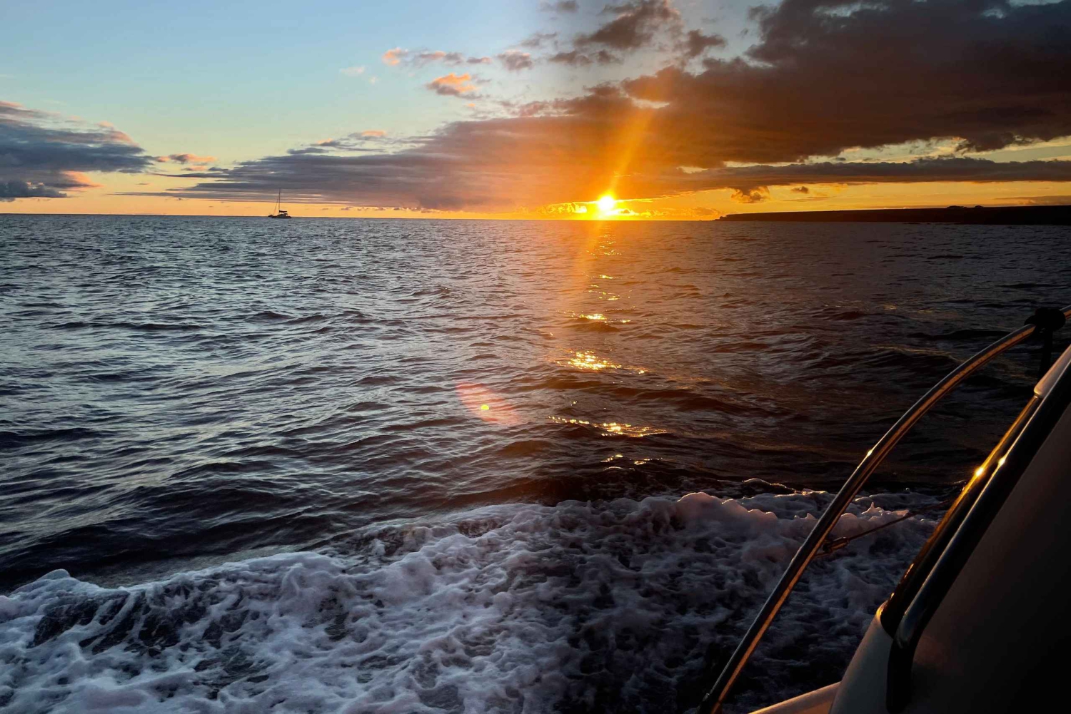 Преимущество этого тура в том, что он дает ту же возможность наблюдать за китами и наслаждаться солнцем и купанием, как утром или днем. Но также у вас есть шанс стать свидетелем шоу, которое называется Закат на Тенерифе! Мы отправляемся из порта Лас-Гальетас днем и все еще успеваем понаблюдать за китами, прежде чем они лягут спать. Мы можем остановиться в красивой бухте, чтобы расслабиться и поплавать в кристально чистых водах, которые можно увидеть только с лодки. Наш повар приготовит вкусную еду из мяса, сыров и морепродуктов. Океан обычно успокаивается к концу дня, что позволяет вам насладиться круизом вдоль южного побережья и его фантастических вулканических скал. Когда солнце садится, цвета острова и его гор становятся более яркими и контрастными. Как вы могли заметить, закаты на Тенерифе очень особенные. Но когда вы видите их в океане, это действительно нужно увидеть. Цвета меняются каждую минуту. облаков. Наконец, когда солнце готово скрыться, вулкан Тейде окрашивается в розовый цвет. Послевкусием этого светового шоу станет бокал игристого вина под тихую музыку на обратном пути в порт.