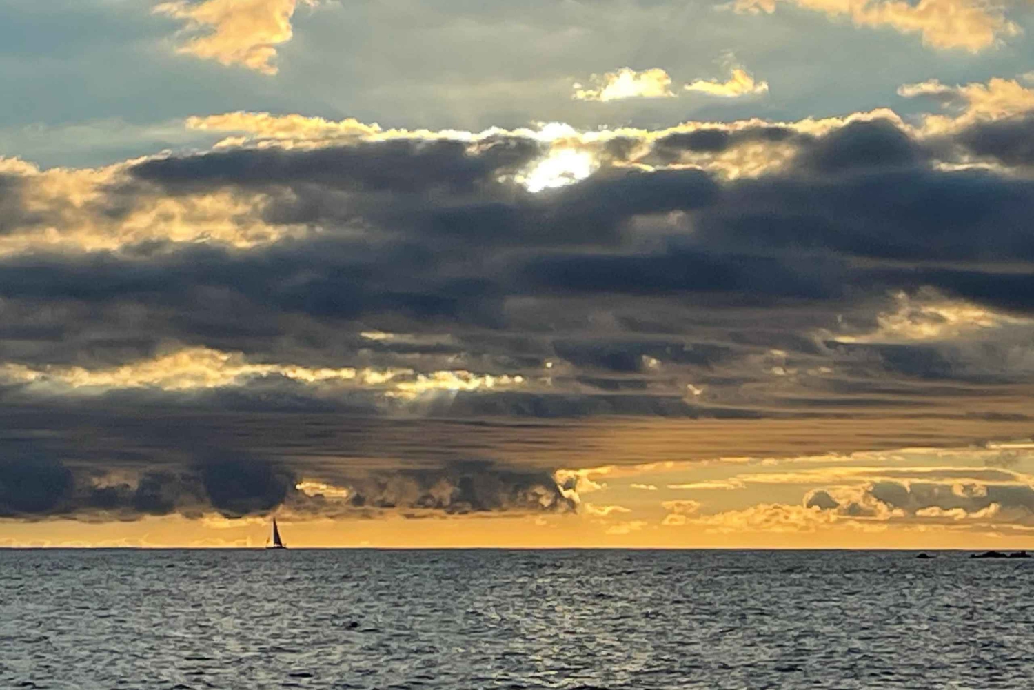 - Полюбуйтесь необыкновенным закатом в океане с борта прекрасной яхты