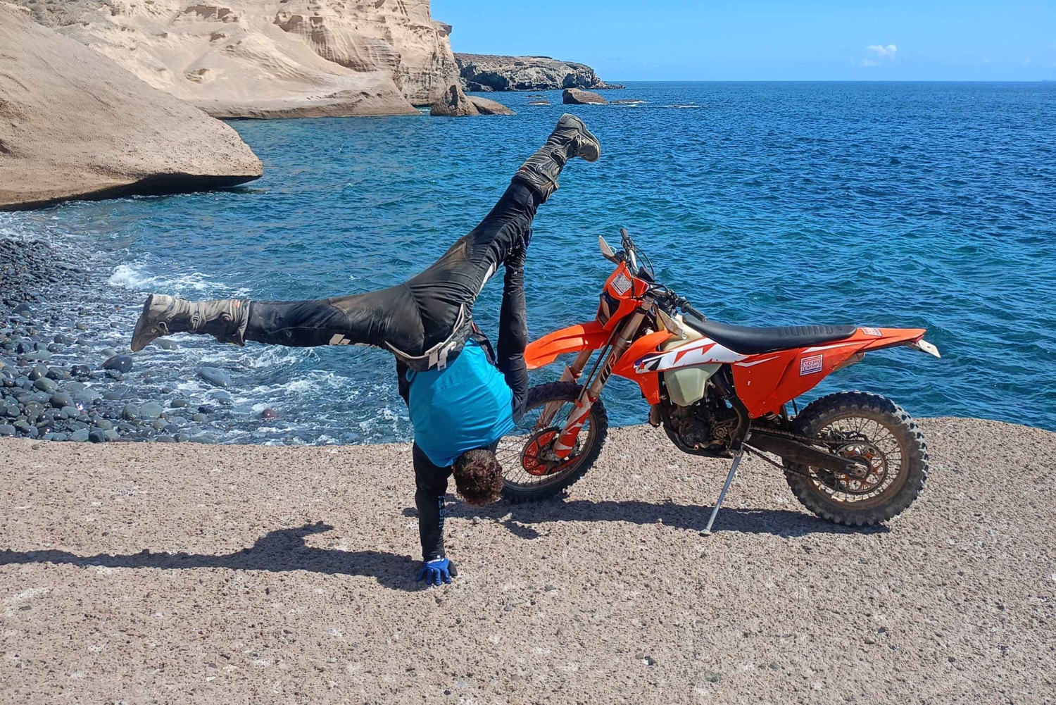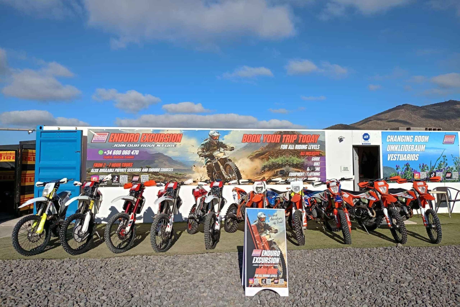 Выезд на мотоцикле эндуро с официальной гоночной трассы для мотокросса в Сан-Мигель-де-Абона, которая находится недалеко от аэропорта на юге Тенерифе. Приключенческий тур для новичков и профессионалов. Эндуро-туры с профессиональным гидом по острову Тенерифе. Индивидуально разработанный тур с разным уровнем сложности. Возможна экскурсия от пляжа до национального парка Тейде на другую сторону острова. Хард-эндуро-туры также предлагаются с квалифицированными гидами высокого уровня. Курсы для начинающих и индивидуальное обучение доступны по запросу.