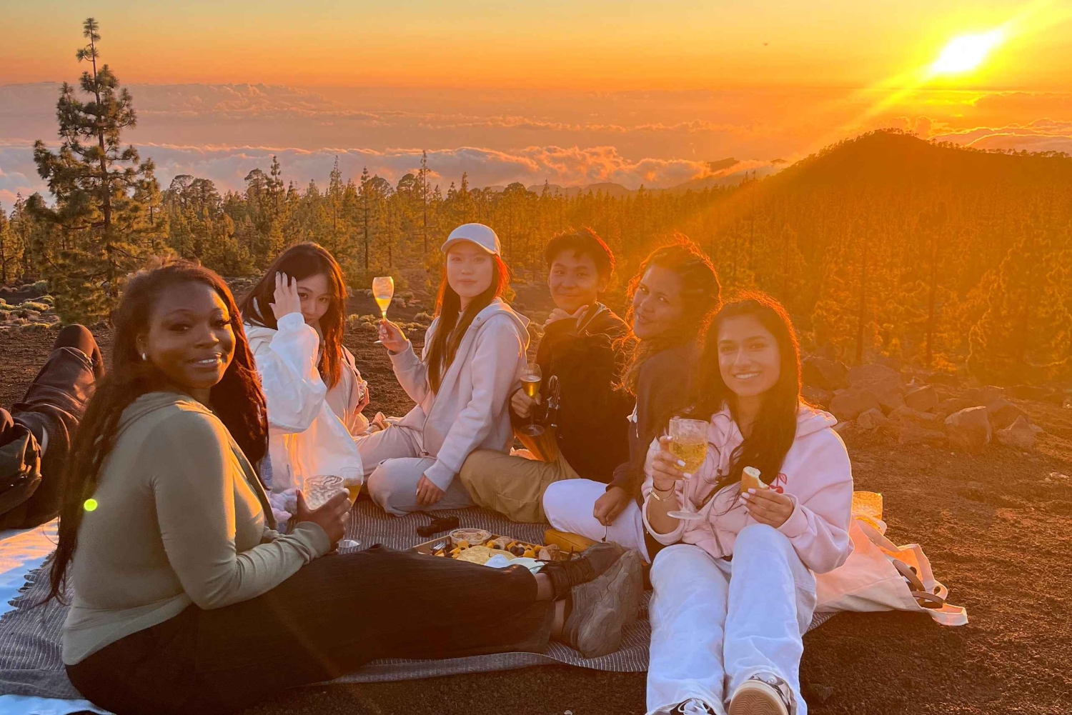 Efter att ha utforskat vulkanens fantastiska landskap kan du njuta av en picknick i solnedgången ovanför molnen med vin, snacks och utsikt över Teide – och sedan titta på stjärnorna under en av världens tre klaraste natthimlar.